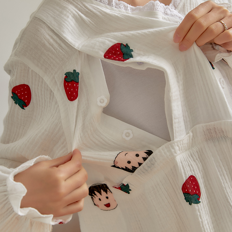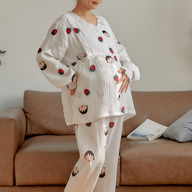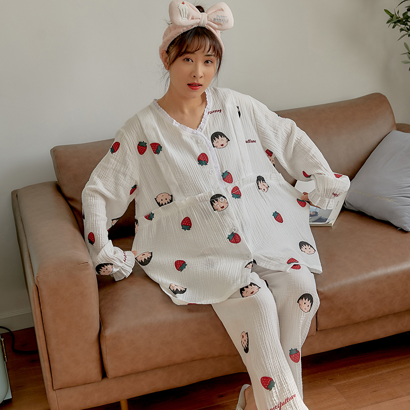 Maternity confinement clothes large size 200 jin cotton round neck gauze nursing pajamas home clothes set autumn and winter conservatory