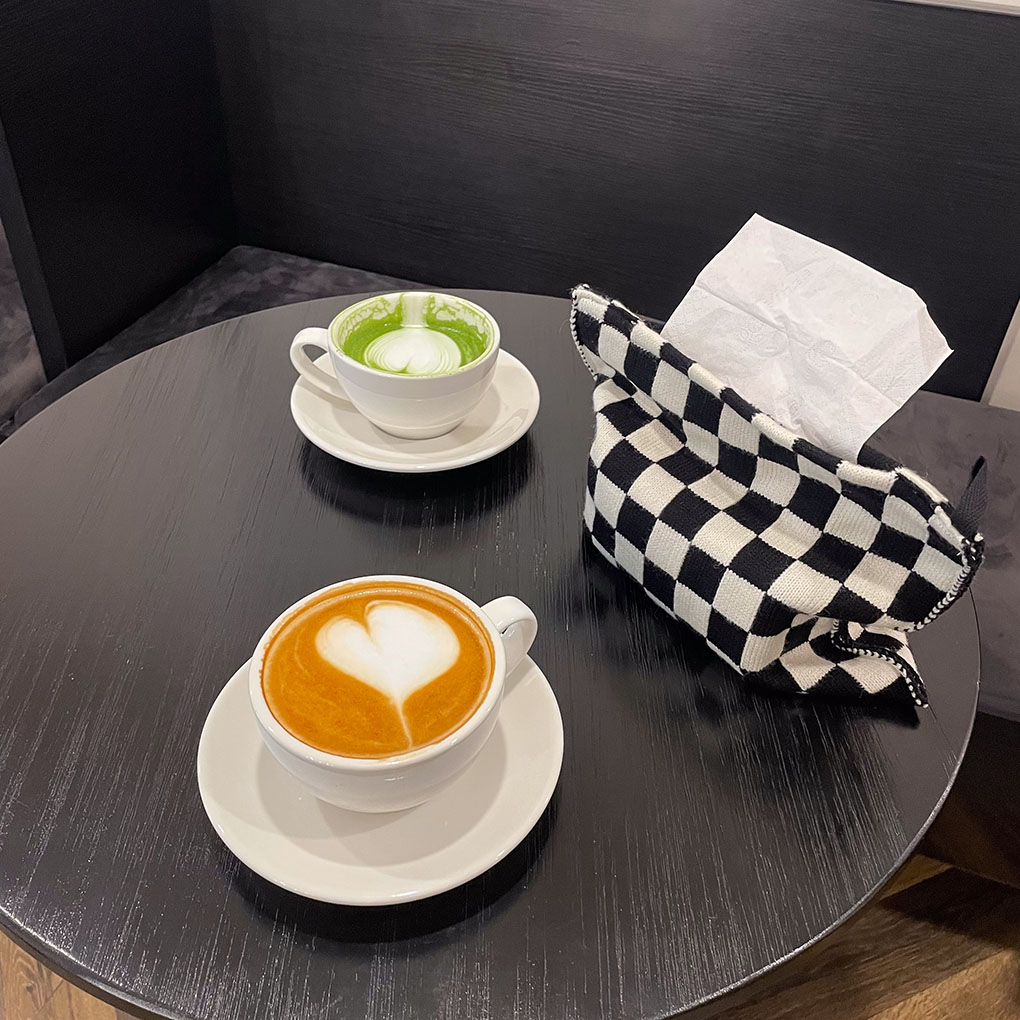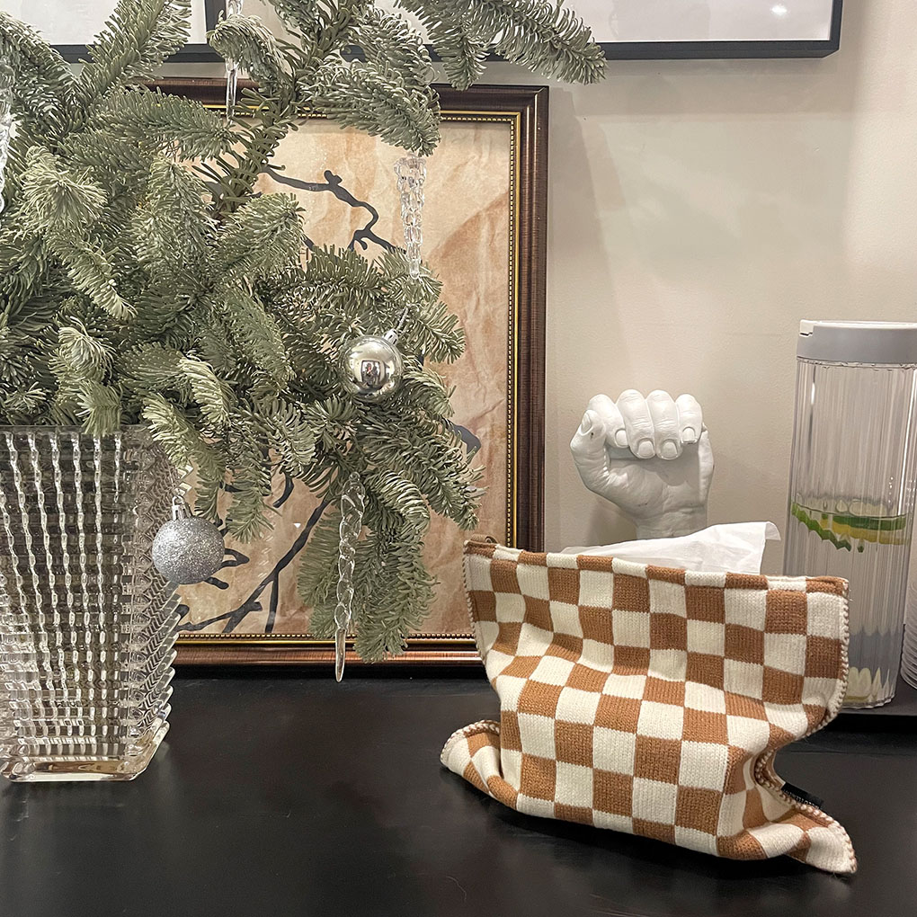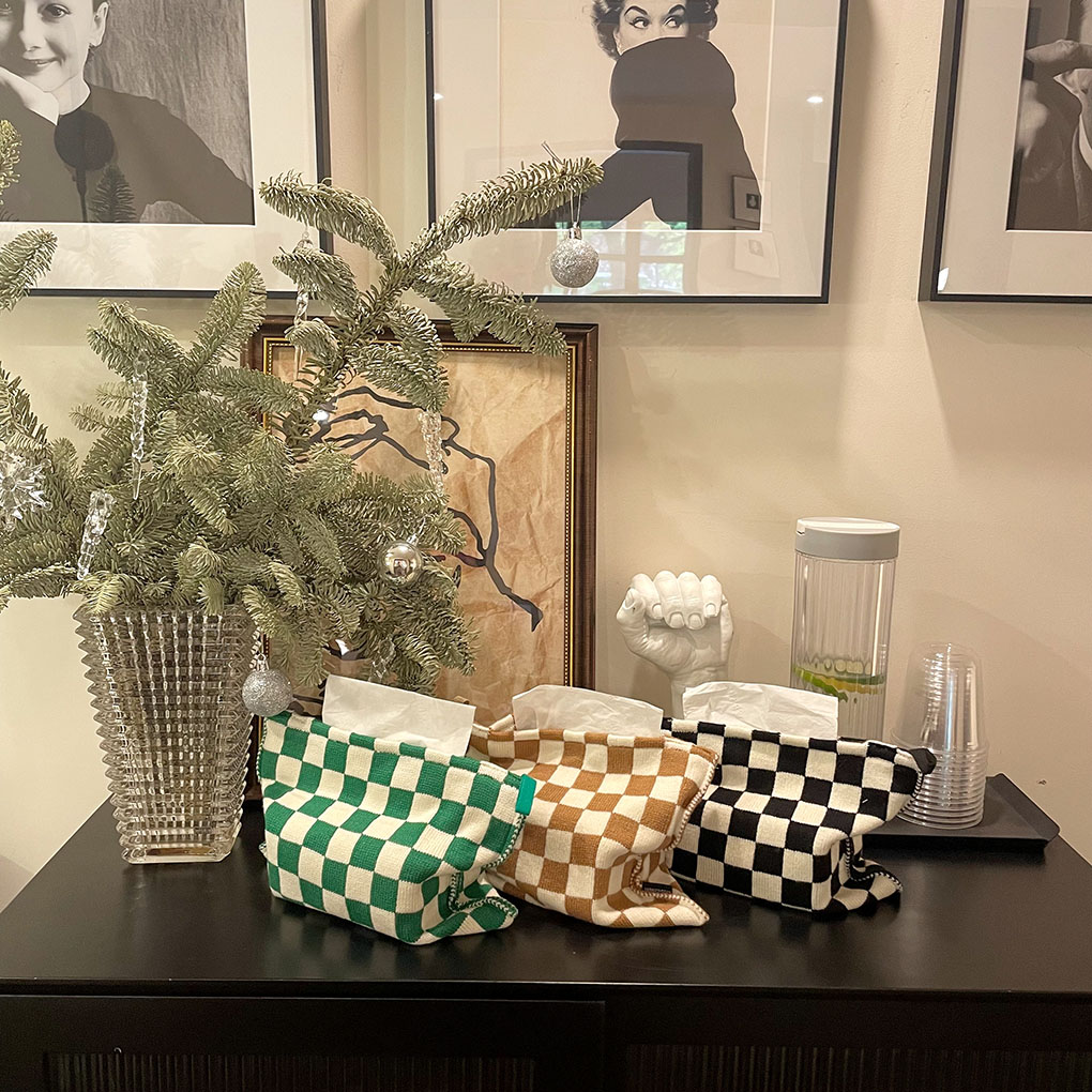 ins checkerboard pumping paper bag fabric knitting hangable tissue box storage bag living room Nordic niche pumping paper set