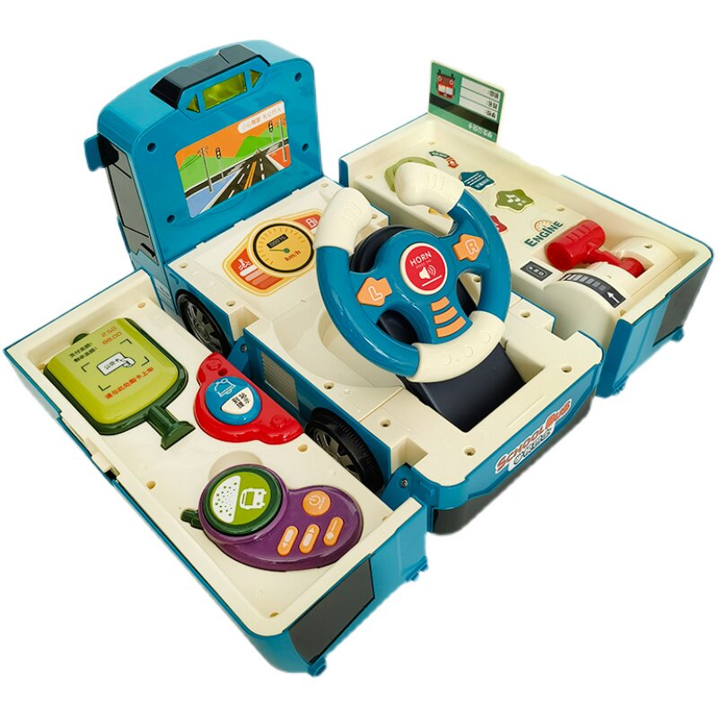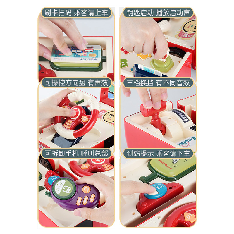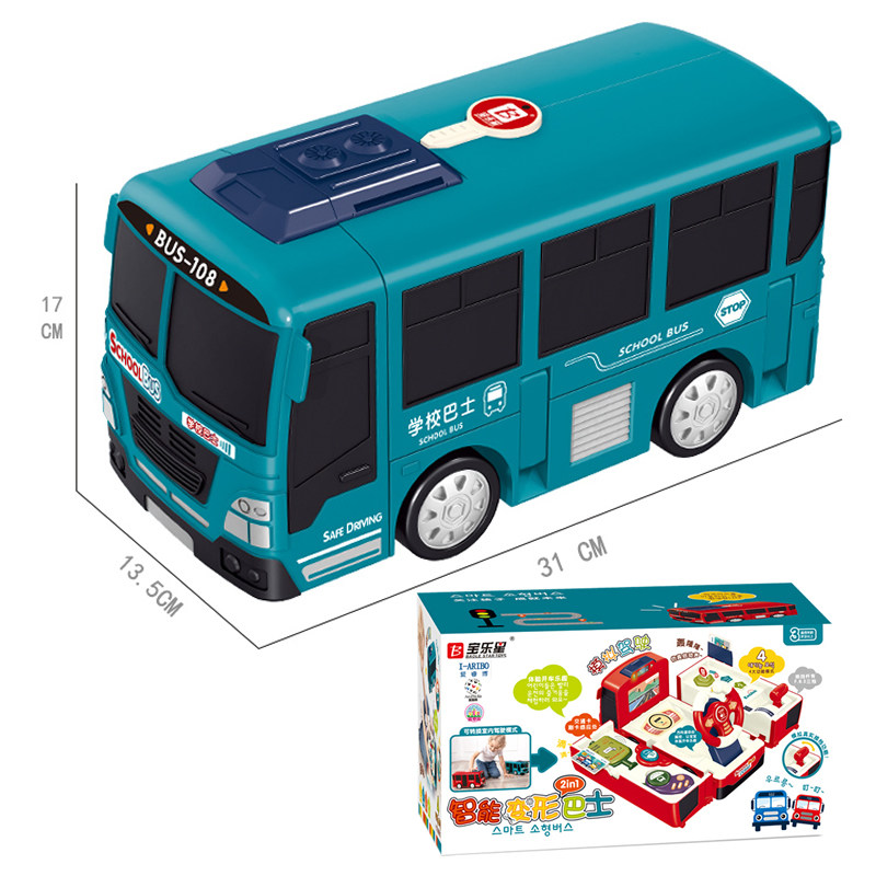 Campus bus steering wheel puzzle early education multi-functional deformation children's inertia police bus bus toy car