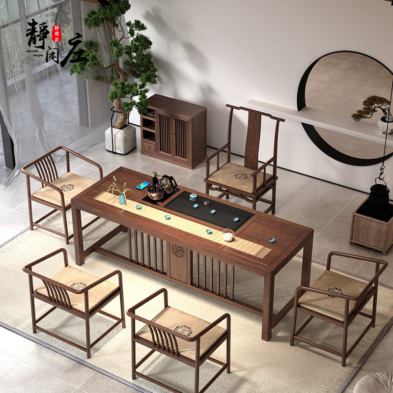 New Chinese style ash wood tea table and chair combination black walnut modern minimalist tea table tea table office solid wood coffee table