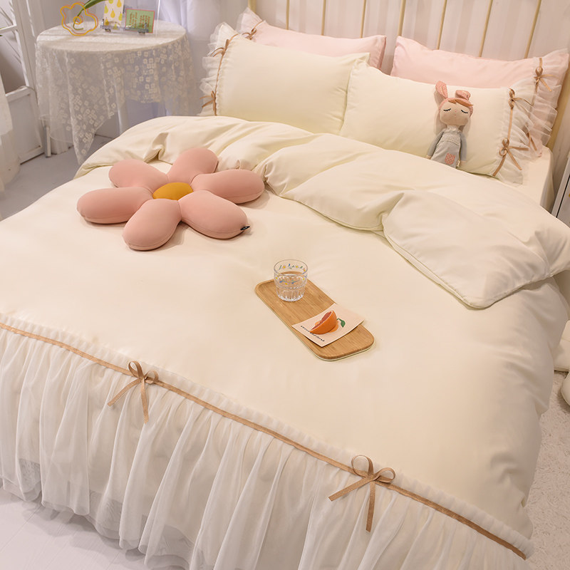 Princess Wind Ice Ice Silk Four Sets Summer Naked Sleeping Ins sheets Quilt Cover Light Extravagant Summer Cool Quillaby Bed Supplies Three Sets of 4