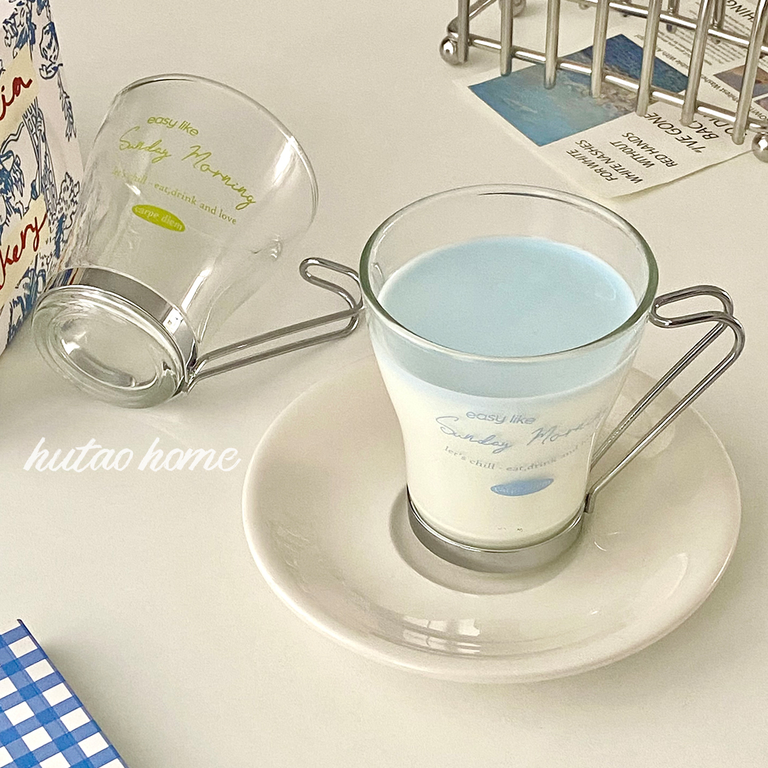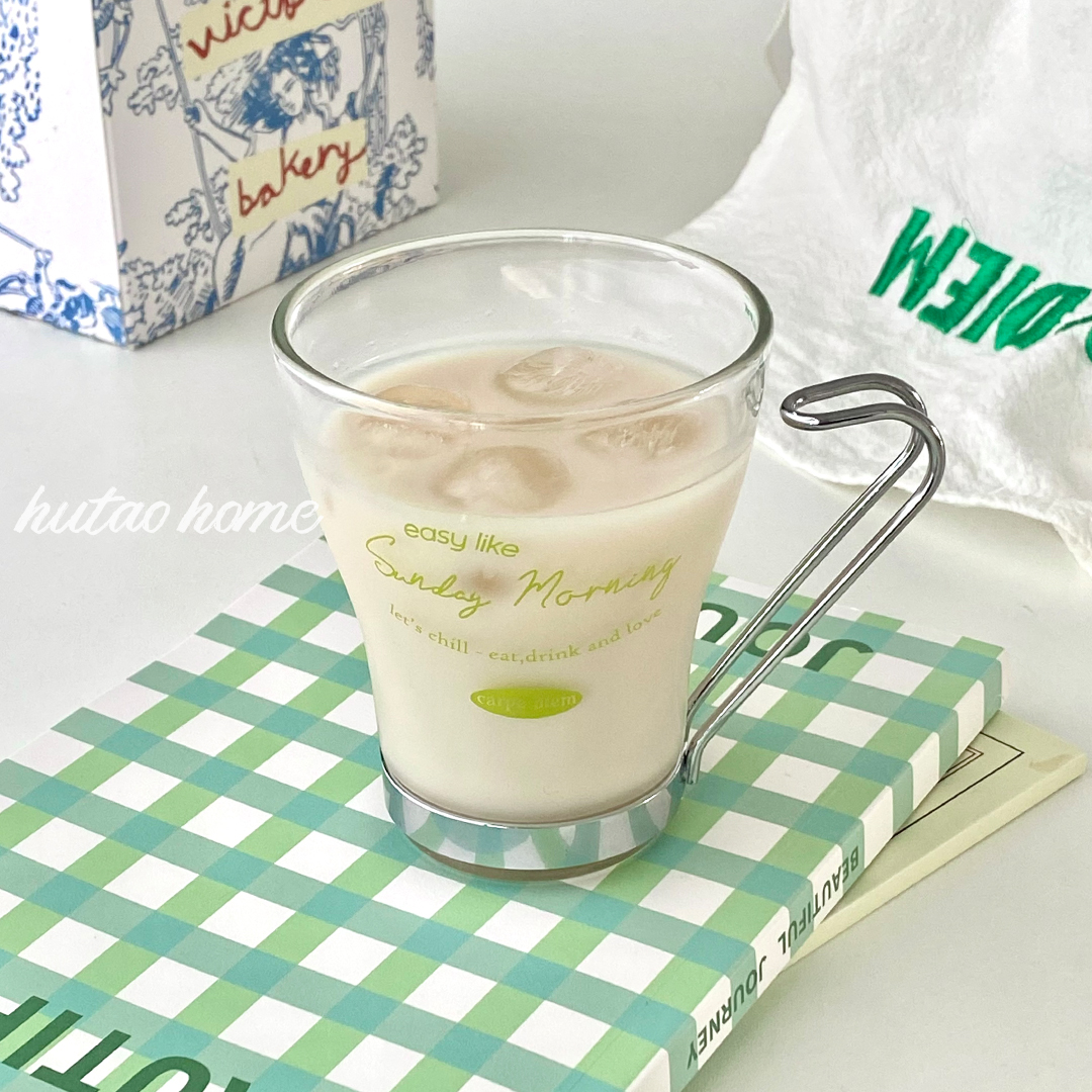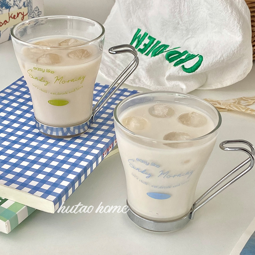 Original homemade ins windy style glass cups stainless steel with handle heat resistant cup of juice cups printed milk cup