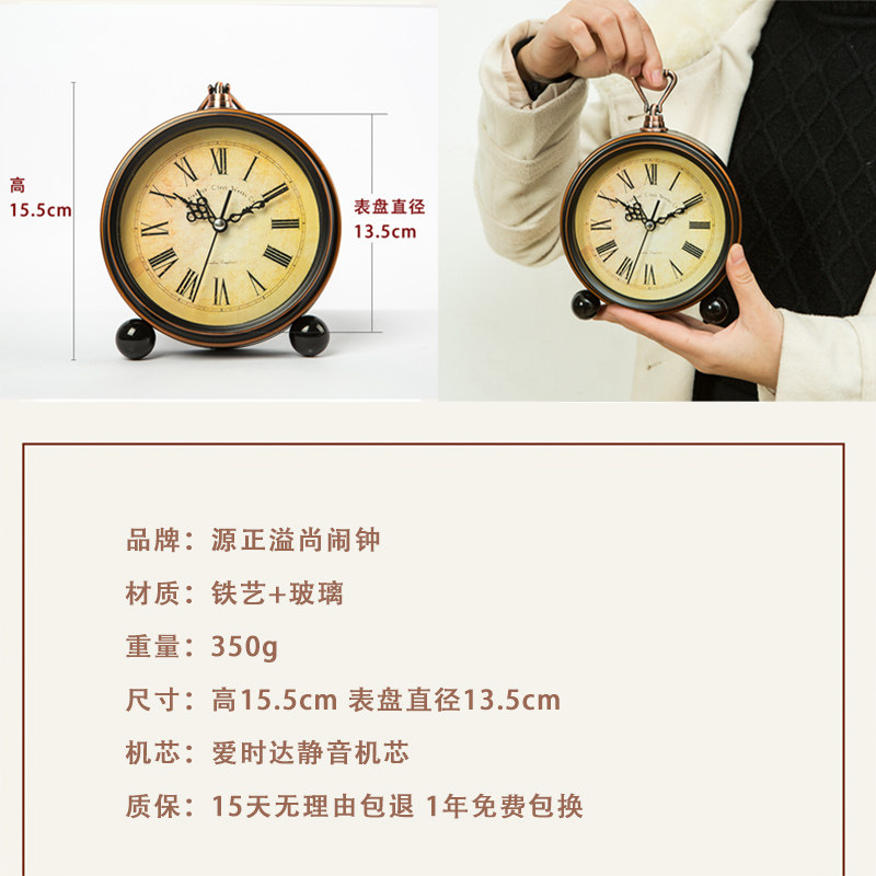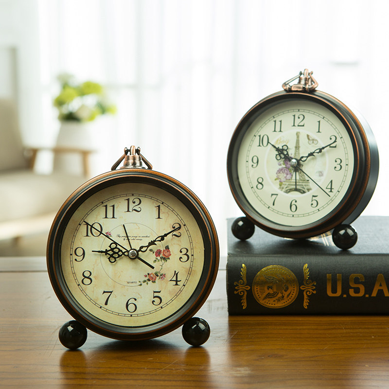 American Retro Seat Clock Living Room Home Fashion Desk High-end Atmospheric Swing Piece Clock Silent Alarm Clock Student Private