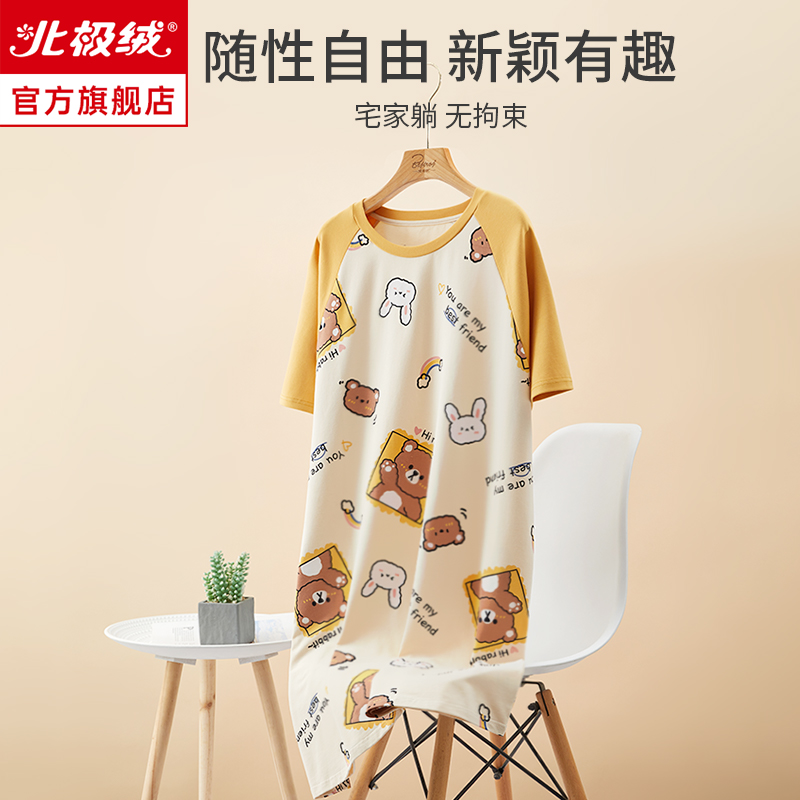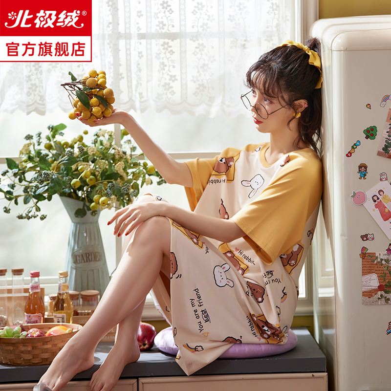 Sleeping Skirt Summer Lady 2022 New Pure Cotton Short Sleeves Cute Large Size Easy and thin Spring and autumn sweet and beautiful home Sleeping Clothes