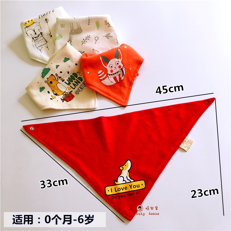 Baby triangular towel pure cotton saliva towel male and female child 0-1-3-6 years old by button baby enclosure for spring and summer increased number a category