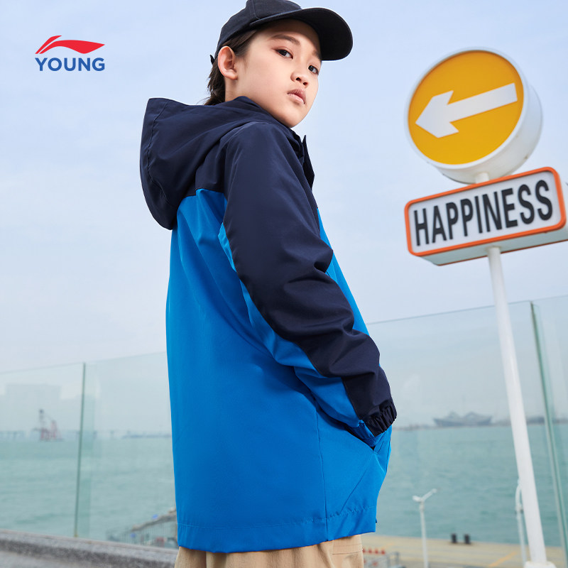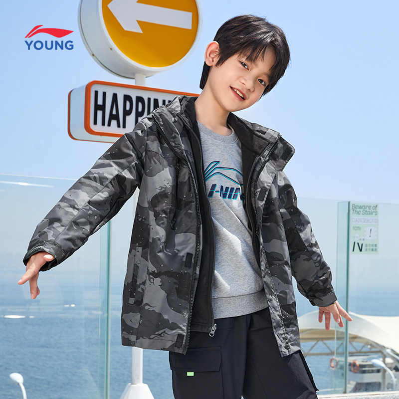 Li Ning children's clothing three-in-one jacket male big children's sports life series cardigan long-sleeved hooded autumn sportswear