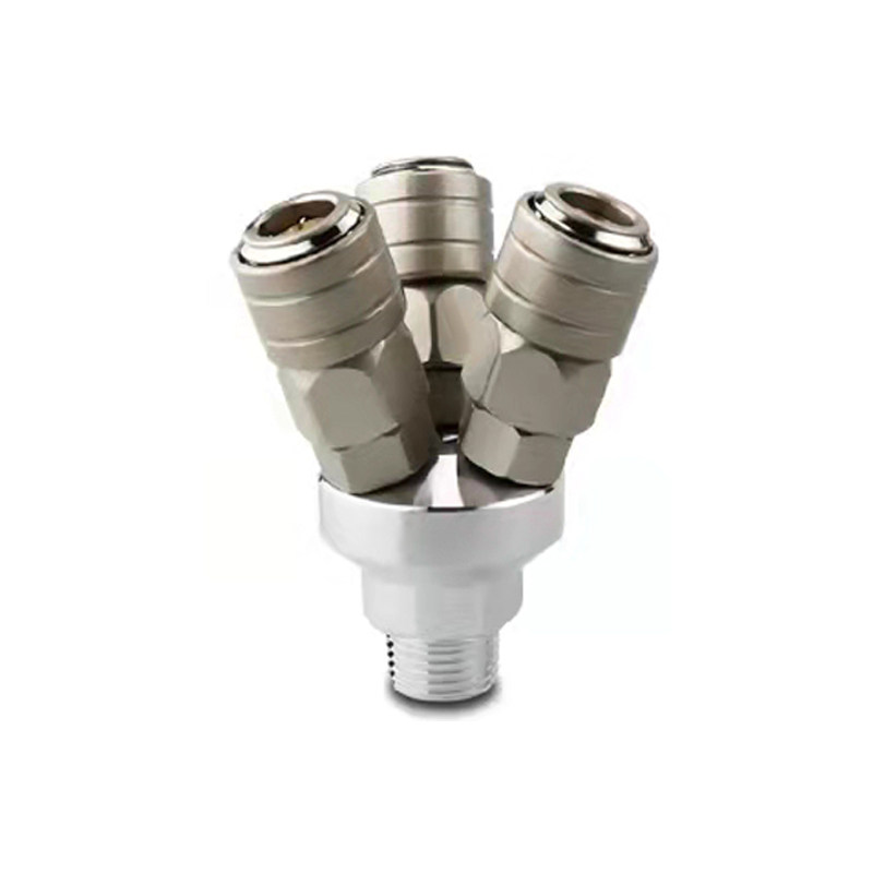 C-type self-locking quick connector air compressor air pump connector SMY round three-way SMV round two-way comes with 4 points of external thread