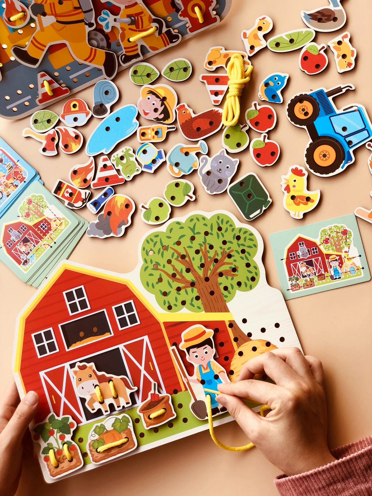 Toddler child exercise baby hands-on finger fine action training button Son Wearing Rope Threading Plate String Beads Puzzle Toy