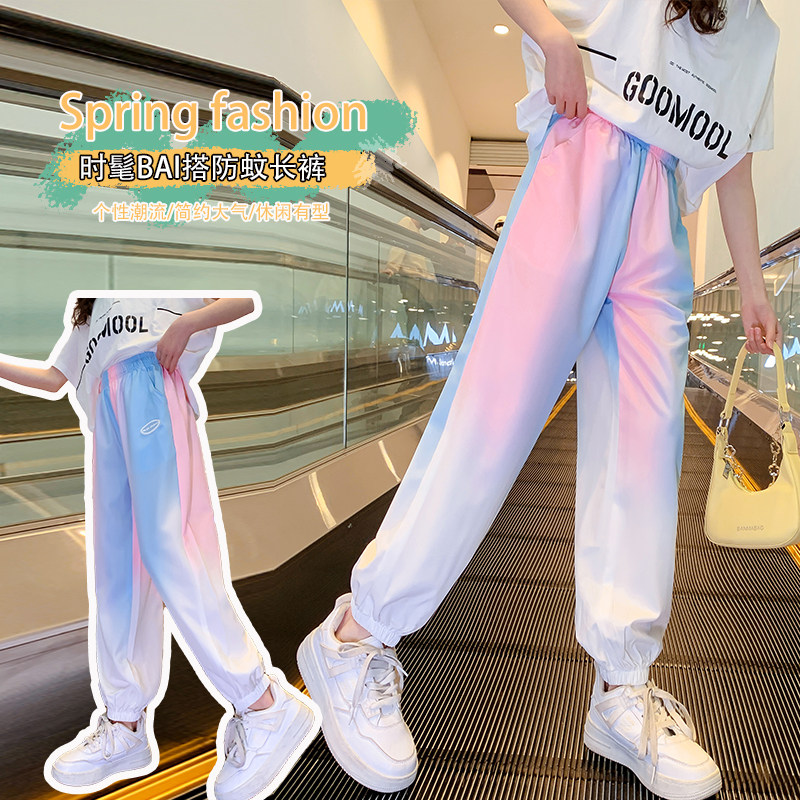Girl Pants Summer Slim Fit Ice Silk Great Boy Foreign Pie Summer Dress Loose Speed Dry Anti-Mosquito Pants Bunches Children Sports Pants