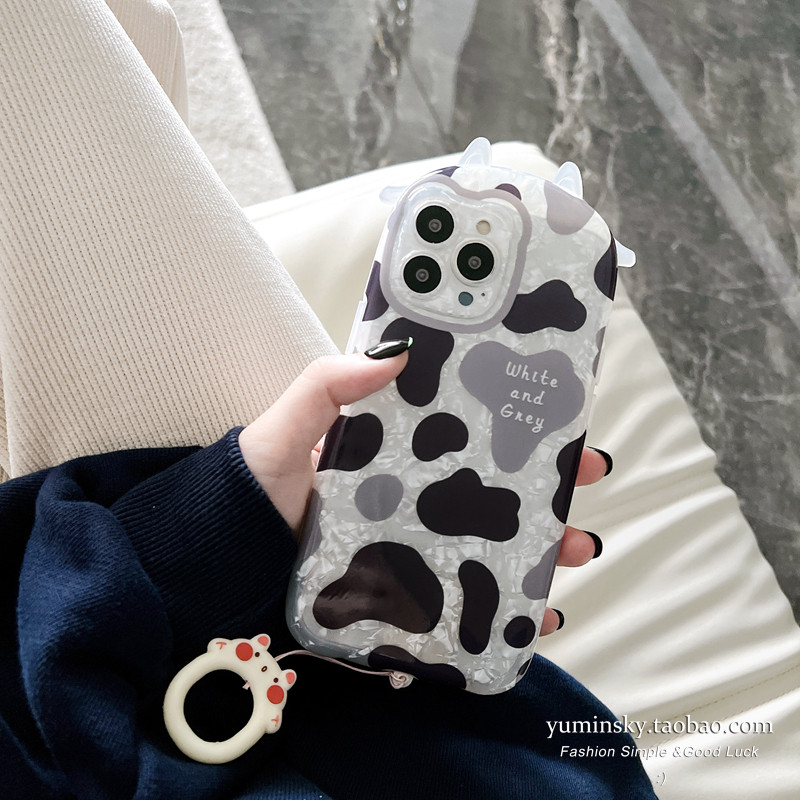 ins shell cows textured apply iPhone12promax apple 13 mobile phone protection shell 11 stereo xs hanging rope xr female 8