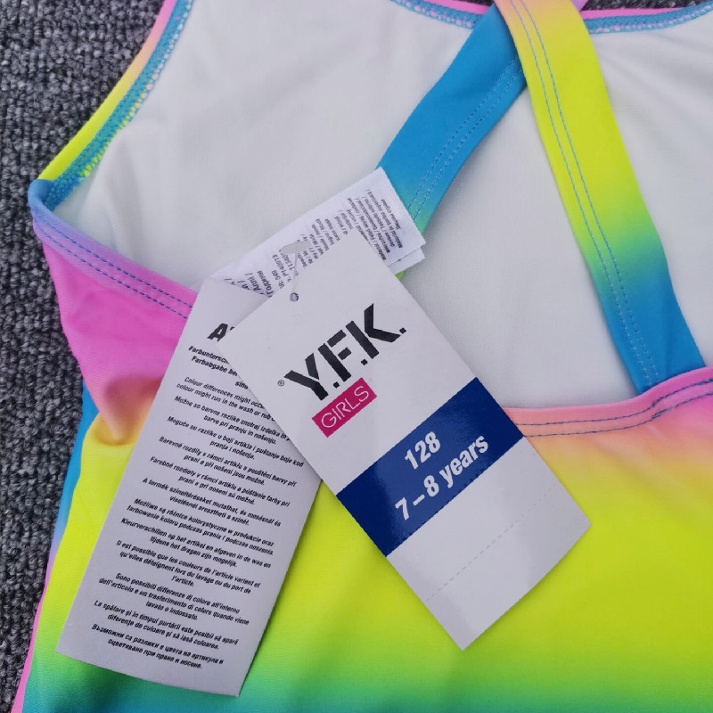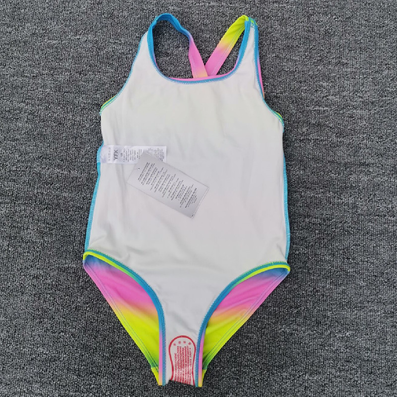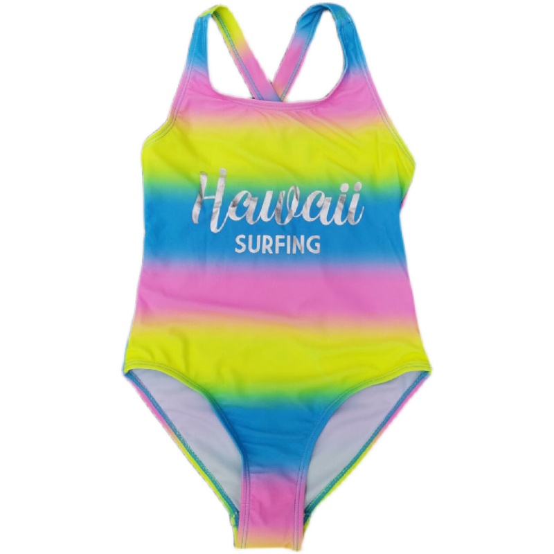 Foreign trade export girls' swimsuit one-piece girl middle-aged and older children 7-14 years old rainbow gradient letters ironing silver quick-drying swimsuit