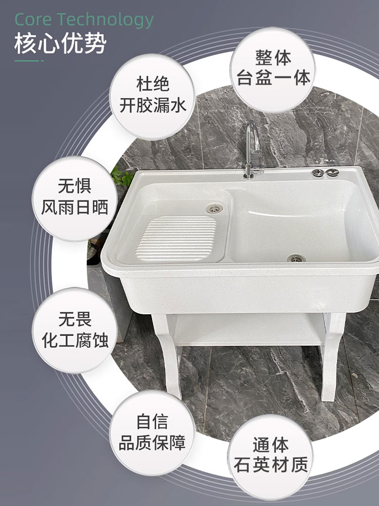 Quartz Stone Laundry Pool Balcony Integrated Terrace Basin Outdoor Washbasin Outdoor Laundry Table Basin With Washboard Patio Pool-Taobao