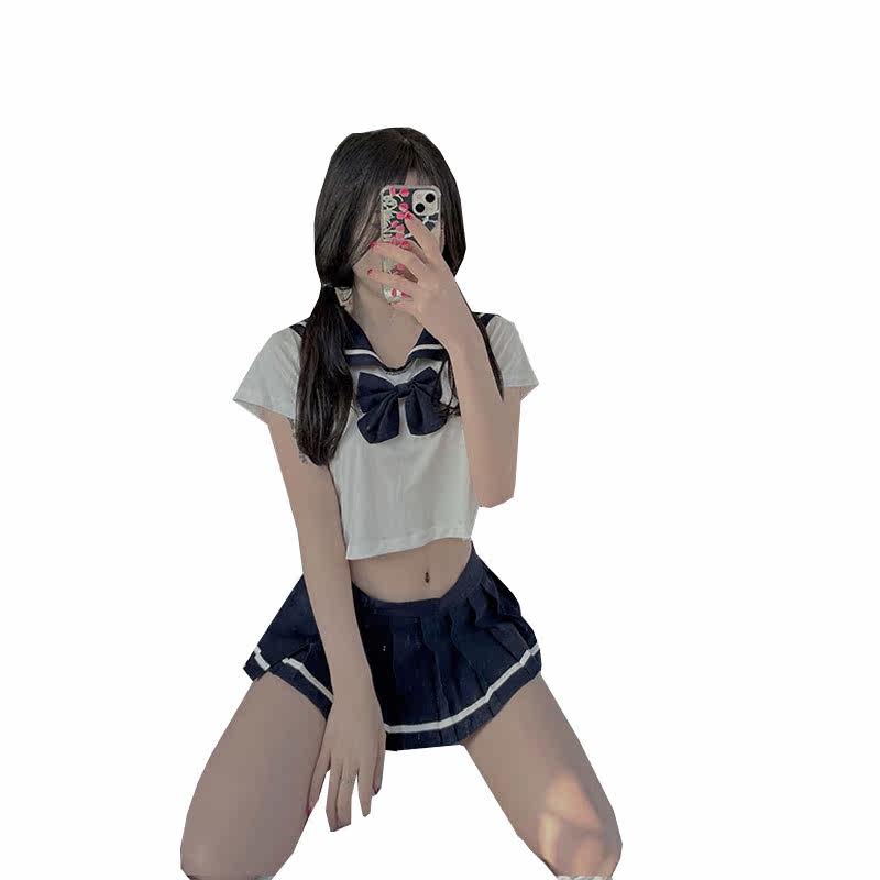 majeallure suit jk uniform female summer dress Japanese sweet school girl navy wind age-reducing pleated skirt two-piece