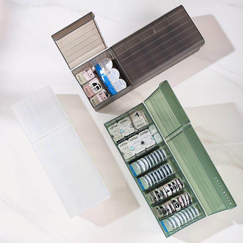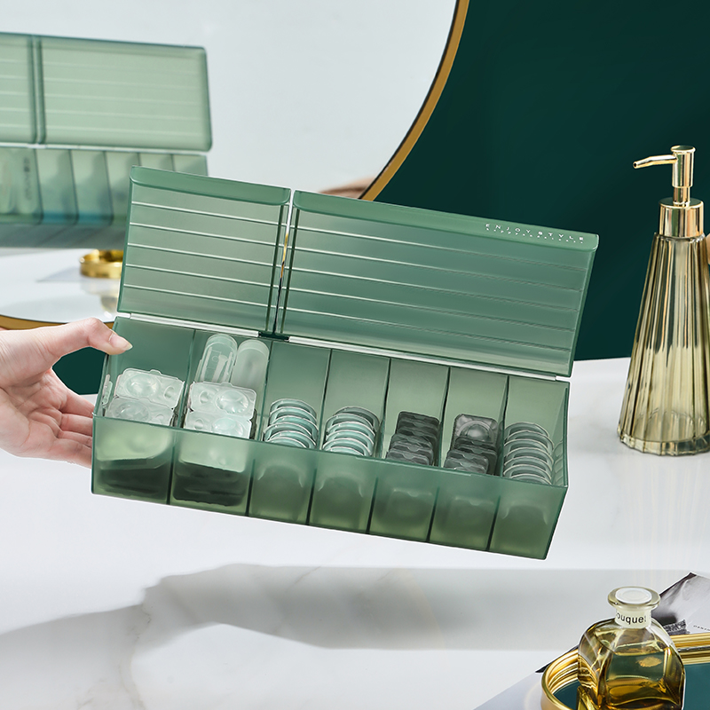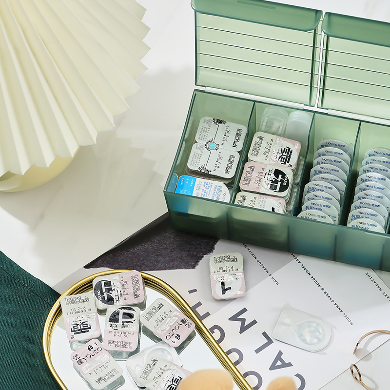 Daily disposable beauty contact lens storage box large-capacity finishing portable multi-grid multi-pair dust-proof storage box with lid