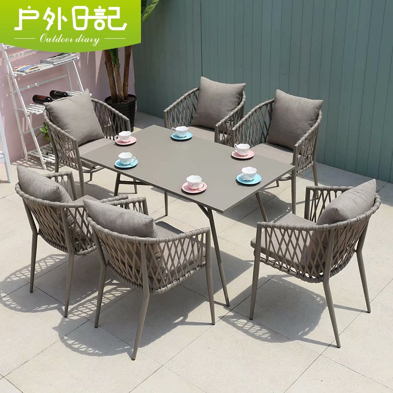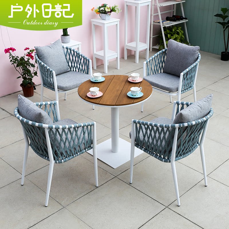 Outdoor table and chairs patio waterproof sunscreen outdoor balcony open air casual plastic wood rock plate dining table and chairs combined with three sets
