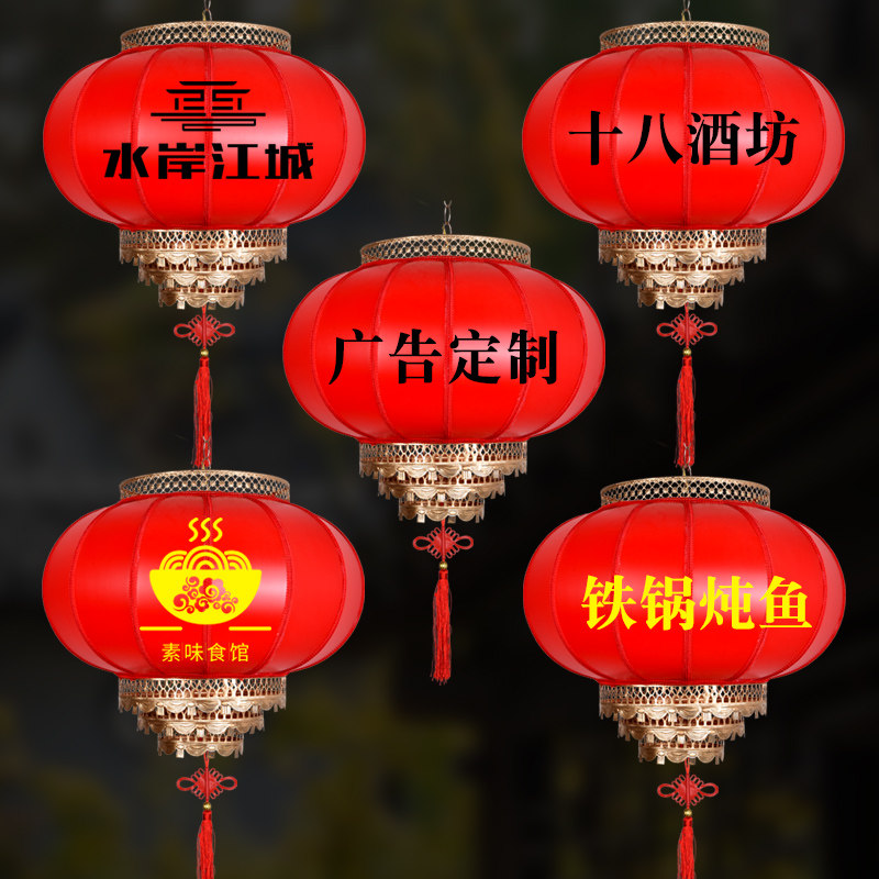 Printed word round sheepskin lantern Outdoor waterproof imitation antique chandelier advertising hotel gate hotel farmhouse music big red lantern-Taobao