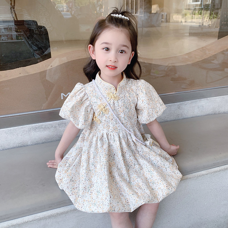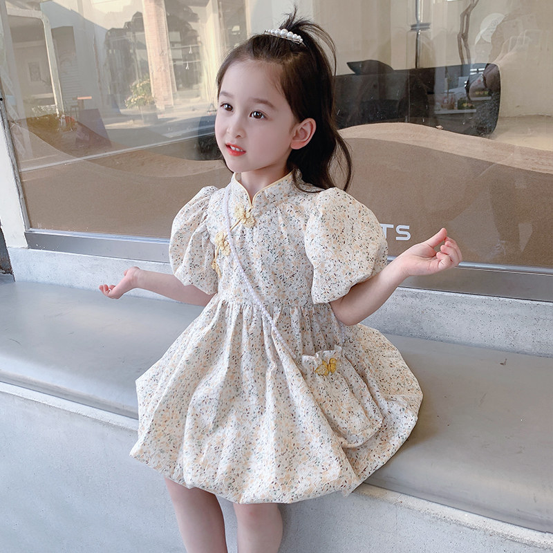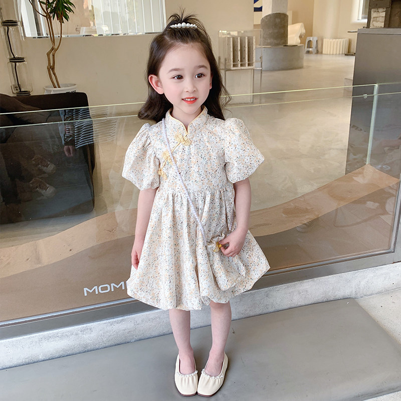 Girl's broken floral dress for summer clothes Korean teas baby princess dresses 2022 new qipao Summer children's dress