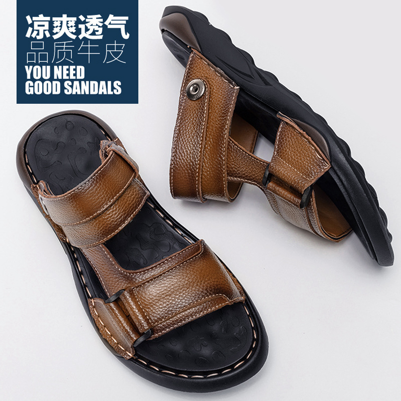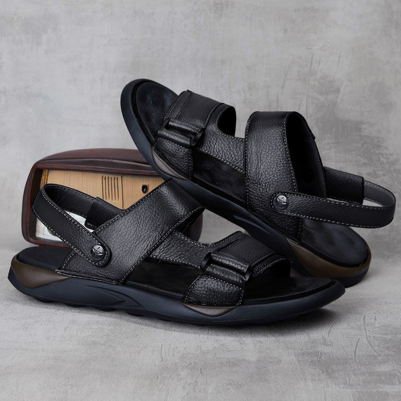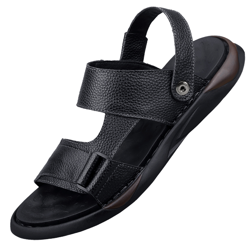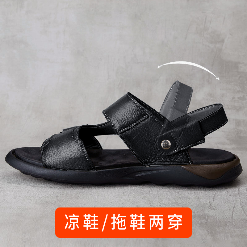 Men Sandals Sandals Summer Black New Head Layer Cow Leather Sandals Youth Casual Beach Shoes Genuine Leather Two Wearing Leather Slippers