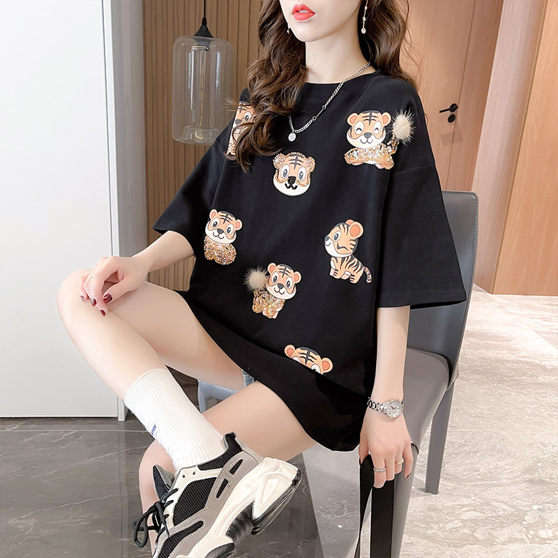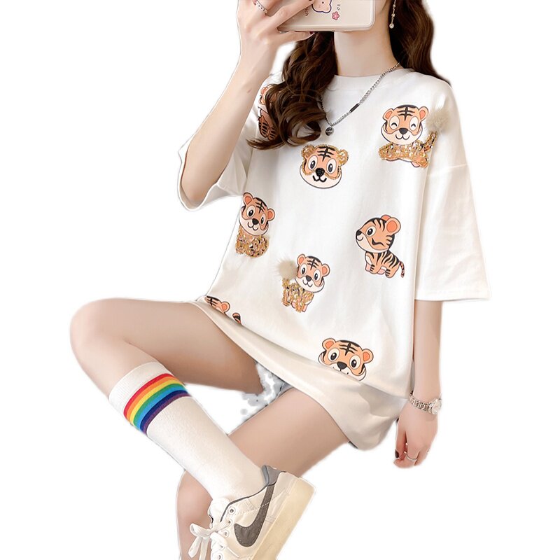 Pregnant Woman Summer Clothing Suit Fashion Section 2022 Tidal Moms Medium Long Version Blouse Summer Short Sleeve T-Shirt Summer Denim Shorts
