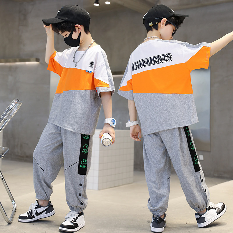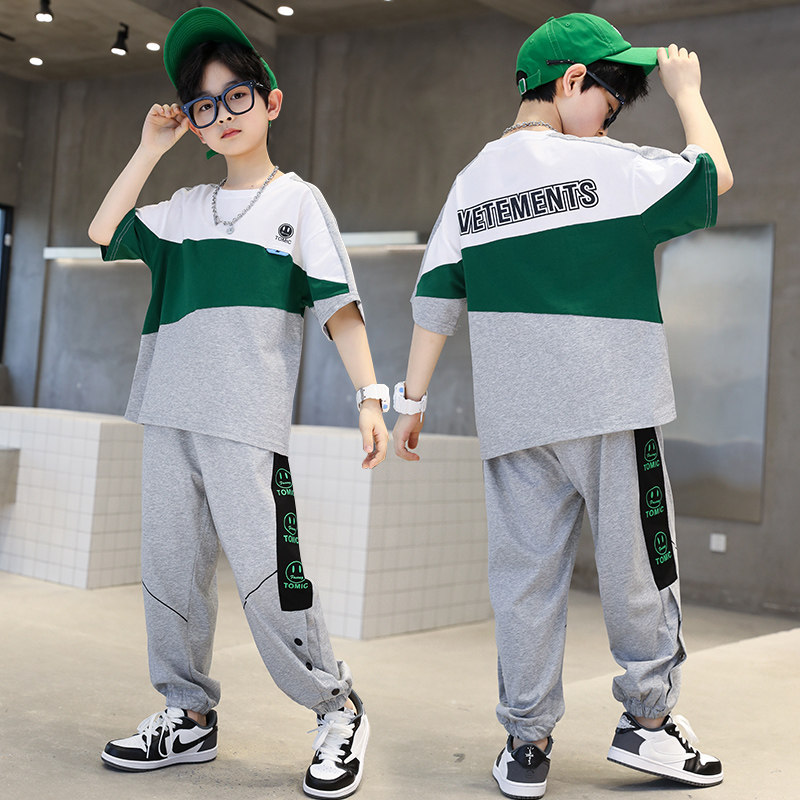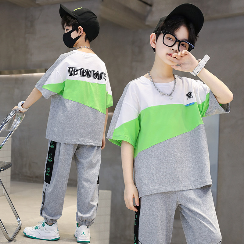 Boy cool with summer clothing suit Chauchai Chauchus 2022 new children Summer short sleeves CUHK two sets of damp