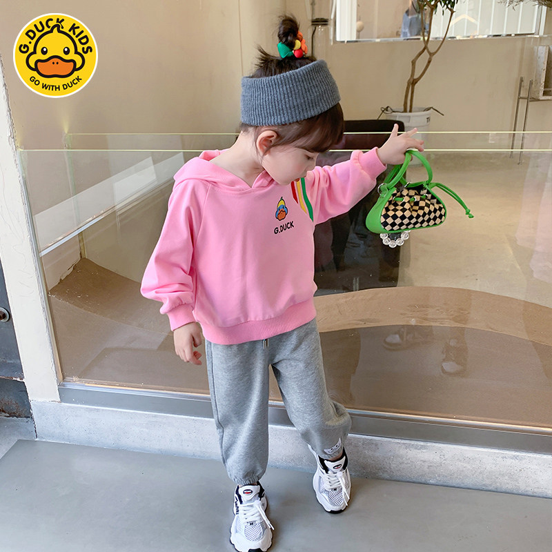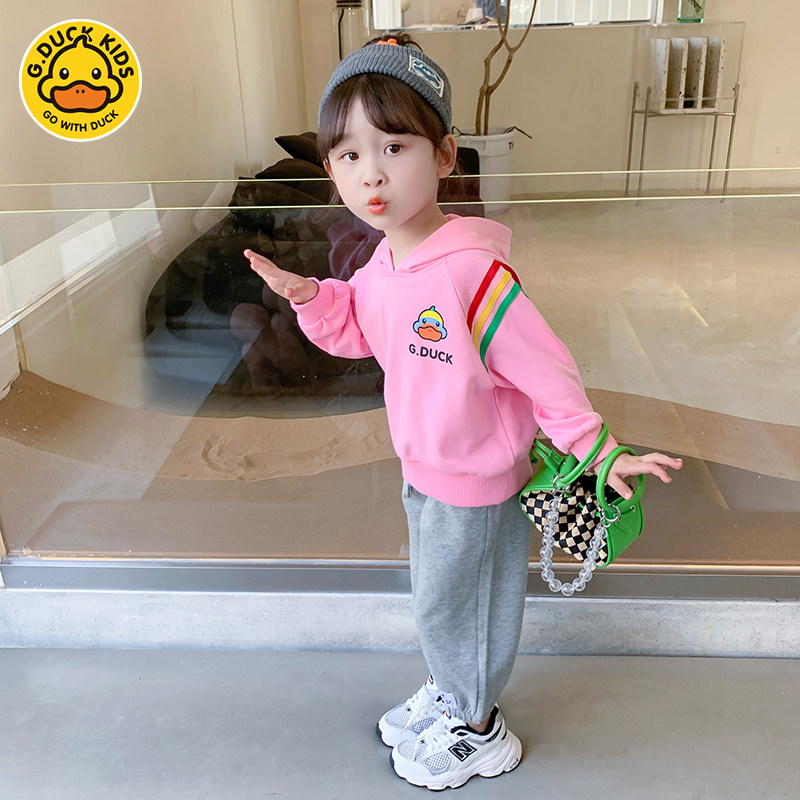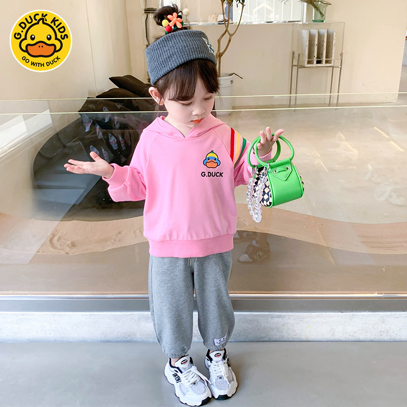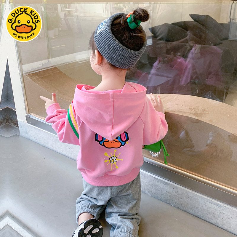 Small yellow duck girl with hoodie sweatshirt spring clothing 2022 new foreign women's baby thin clothes spring children's blouses