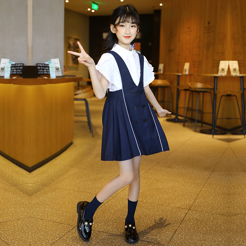 Girl Braces Skirt Summer Dress Suit 2022 New Children's Web Red College Wind Summer Dress Sdress CUHK Dresses