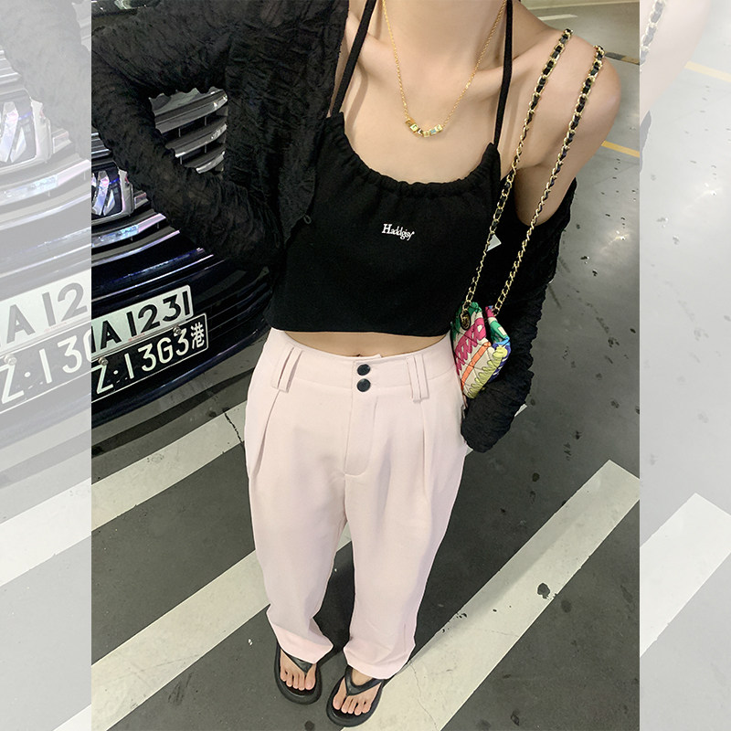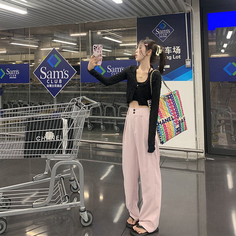 Zeng Small Salty Women's Clothing Summer Slim Fit Black Western Dress Pants Woman Straight Barrel Loose High Waist Pituitary Pants Casual Pants Casual Pants