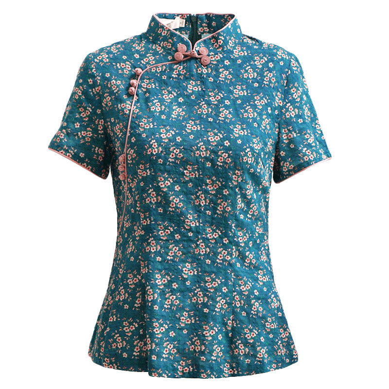 Junya Tang suit women's Chinese style summer 2022 women's short-sleeved tops cotton and linen thin Chinese-style buckle women's clothing