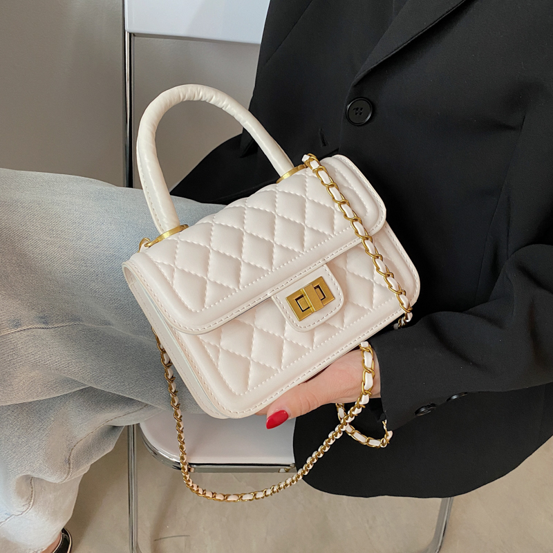 With a taste ~ show temperament 2022 fashionable niche diamond leather bag ladies solid color can be cross-body portable