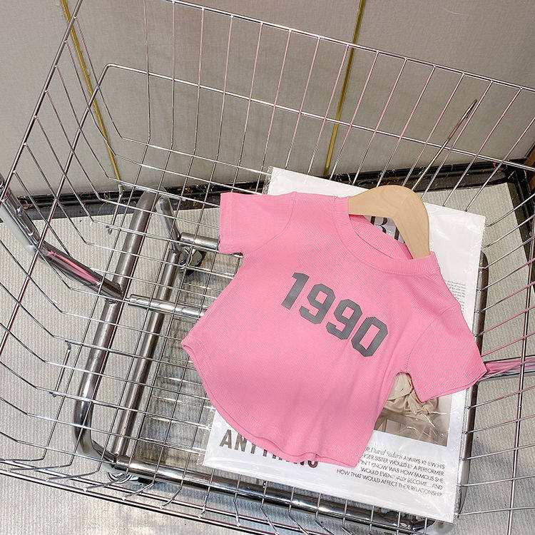 Summer girls' alphabet half-sleeved t-shirt top new 2022 Korean version of foreign style baby thin section all-match cotton short-sleeved T