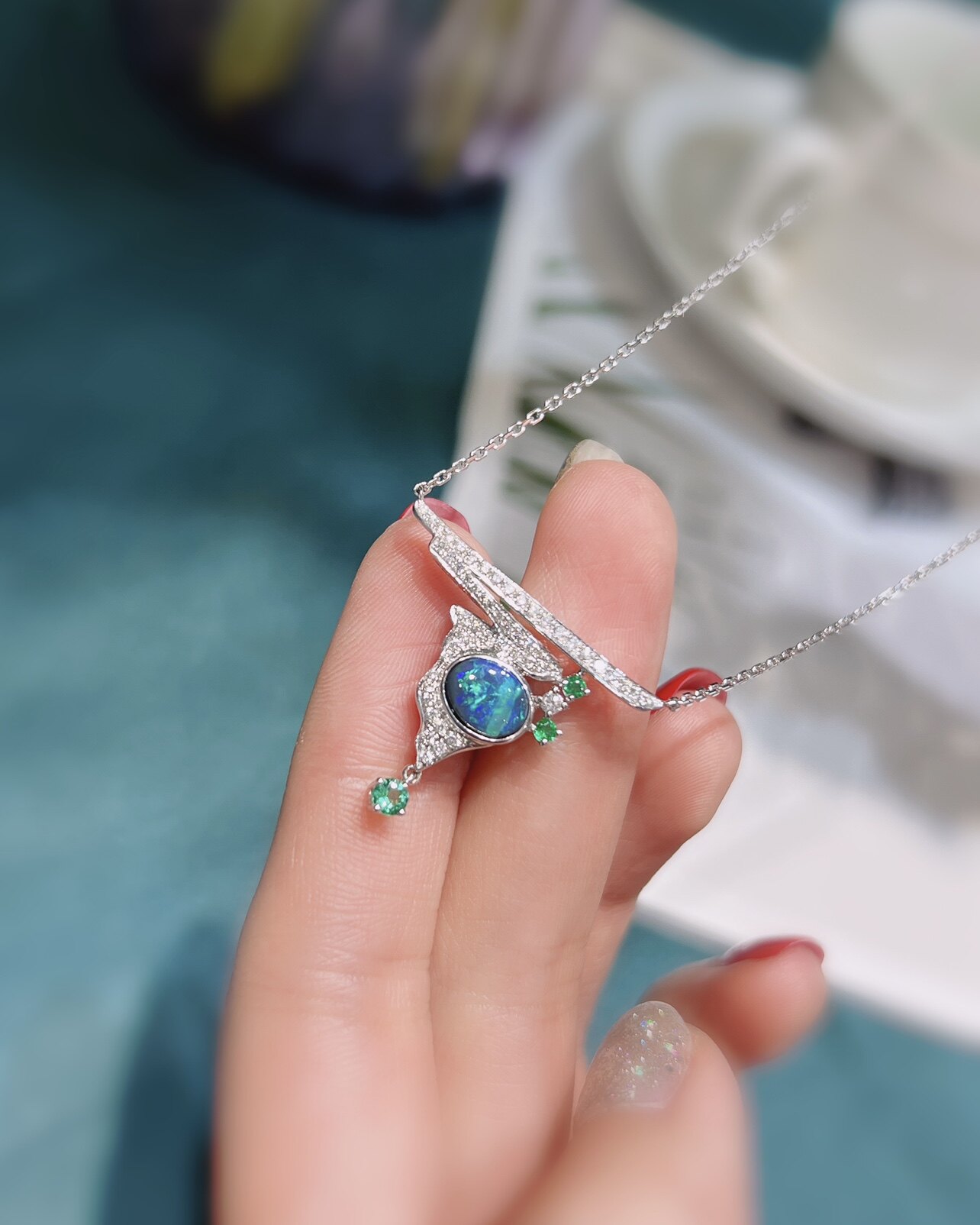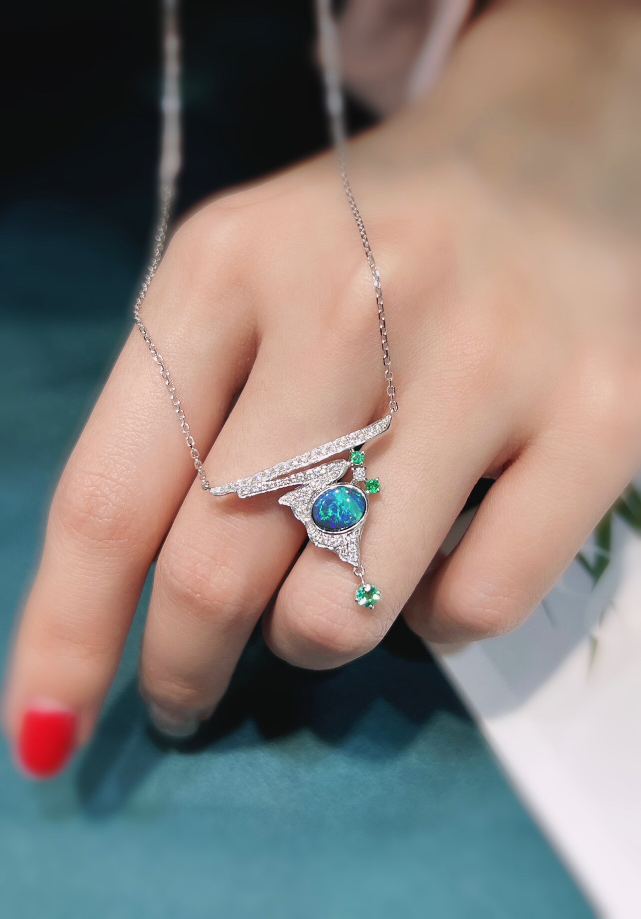 18K black EuroPark chain pendant abstract design Australian Bao pendant with light green