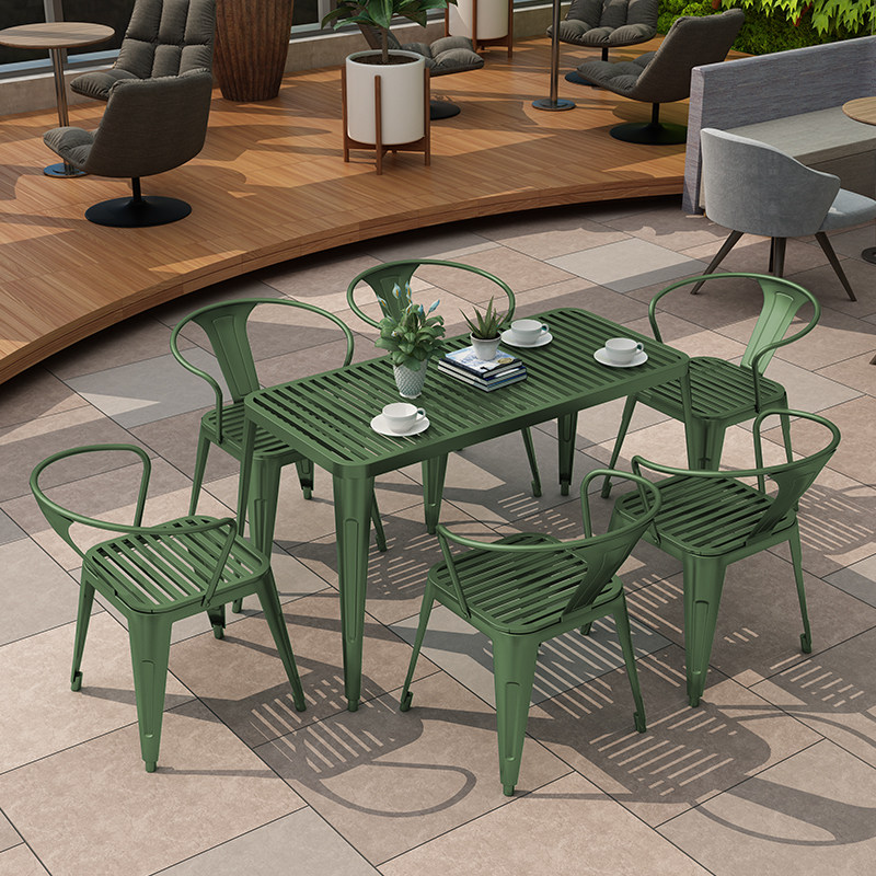 Green chair sitting height 45 Green square table 70*70*75 Green long table 140*70*75 Green square table 4 chairs A green long table 6 chairs B green long table 6 black chairs