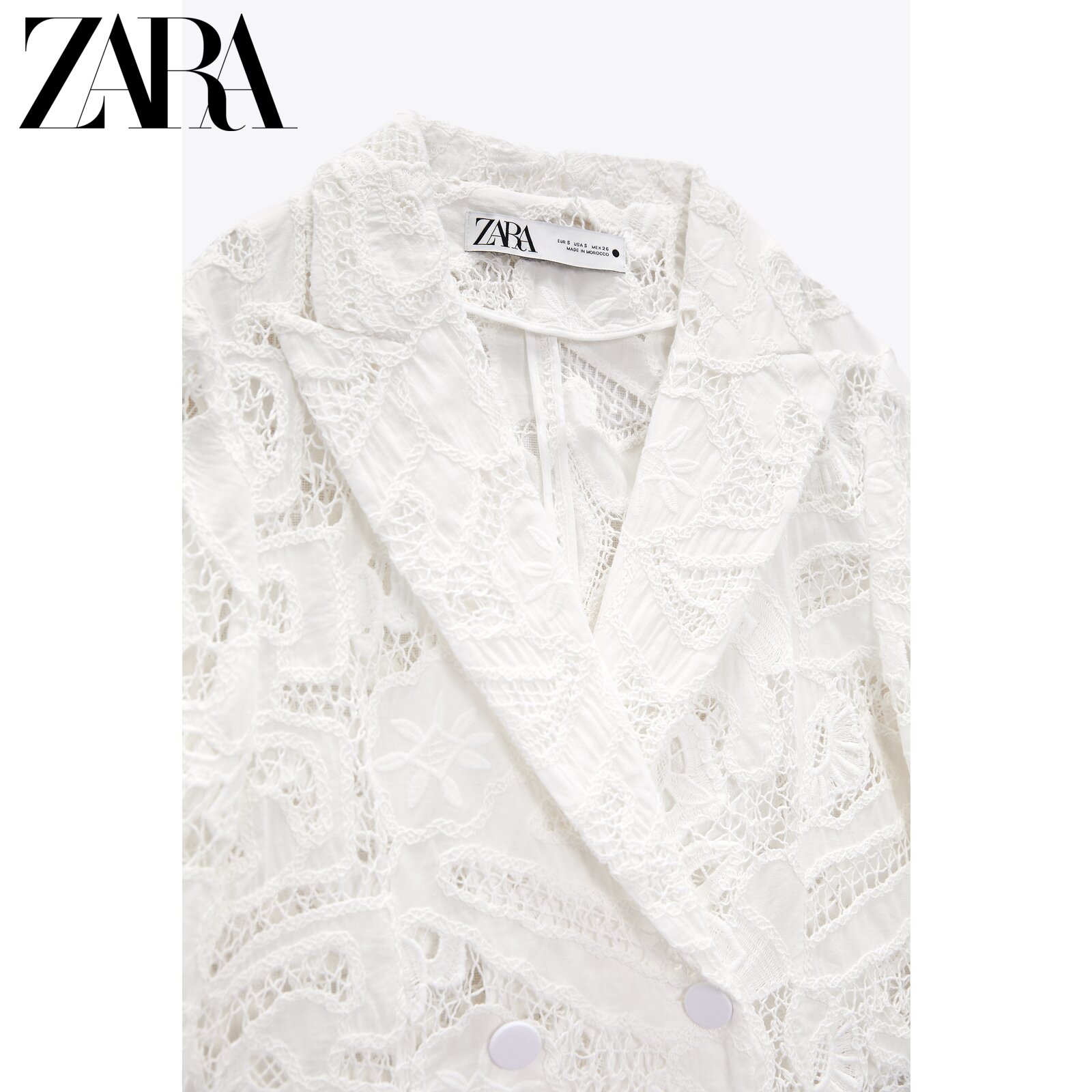 ZARA new women's dress white hollowed-out fabric double-row buttoned suit jacket 2496912250