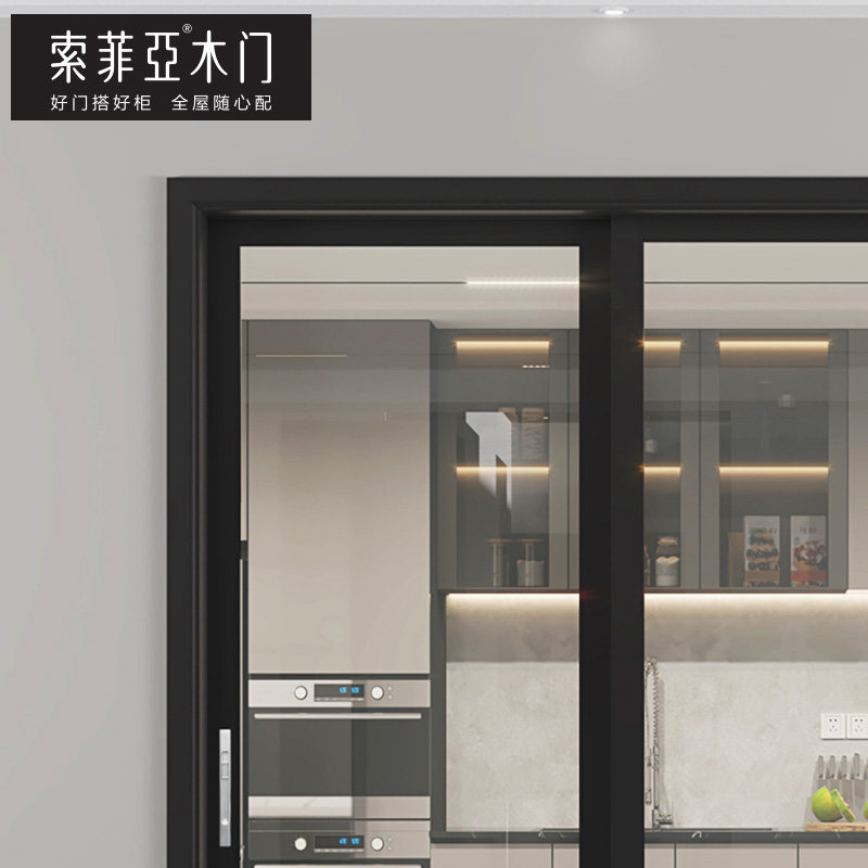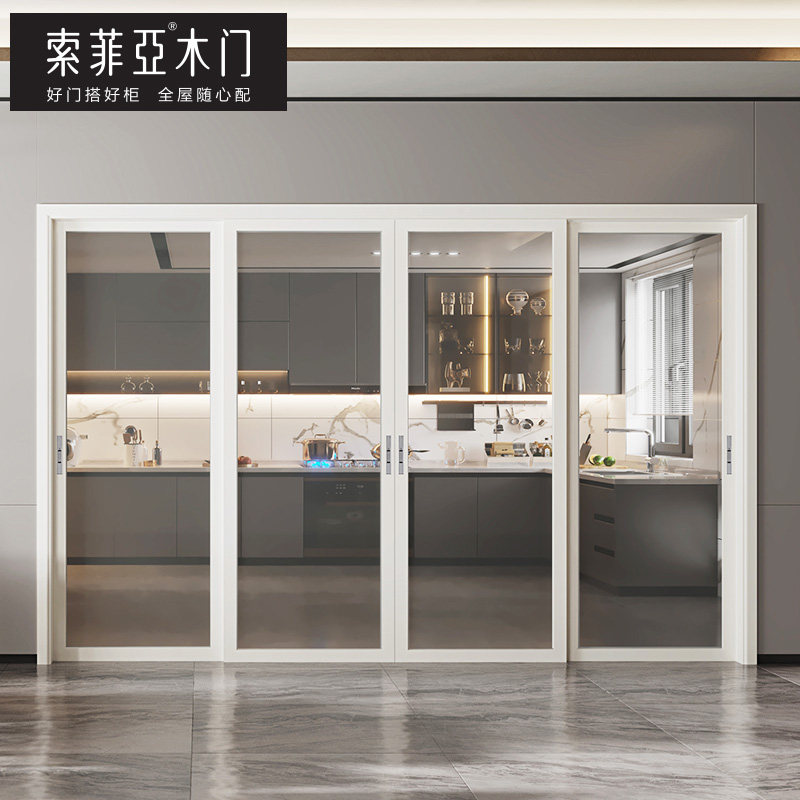 Sophia wooden door Kitchen door extremely narrow glass door three-linkage sliding door aluminum alloy door custom silent sliding door