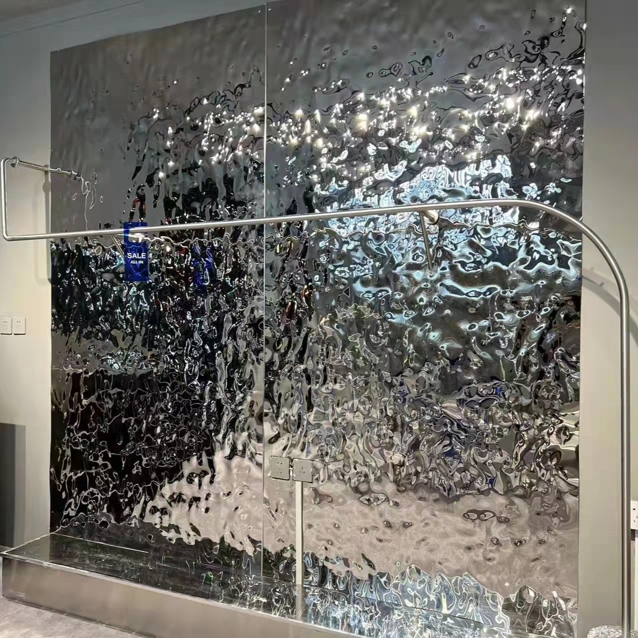 Water corrugated stainless steel plate machined with background wall ceiling ceiling metal mirror embossed wave hanging decoration spot