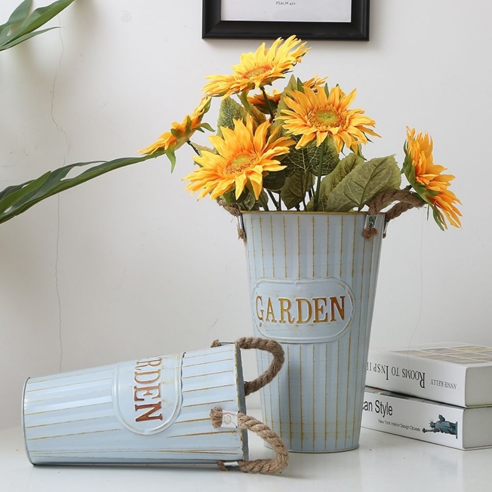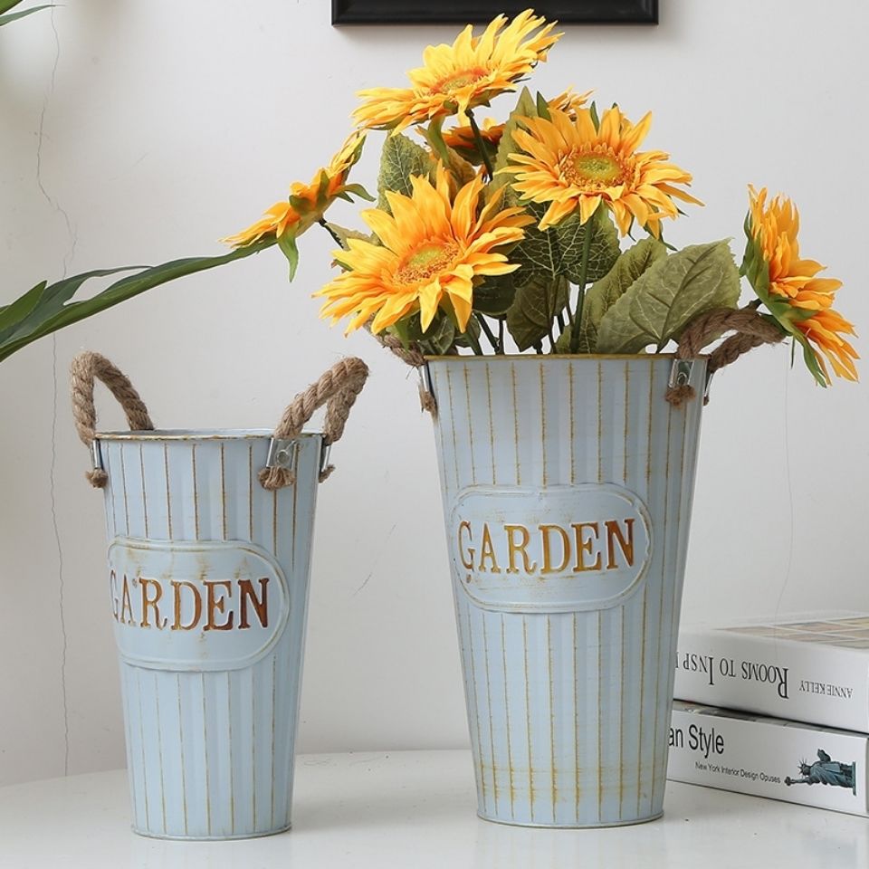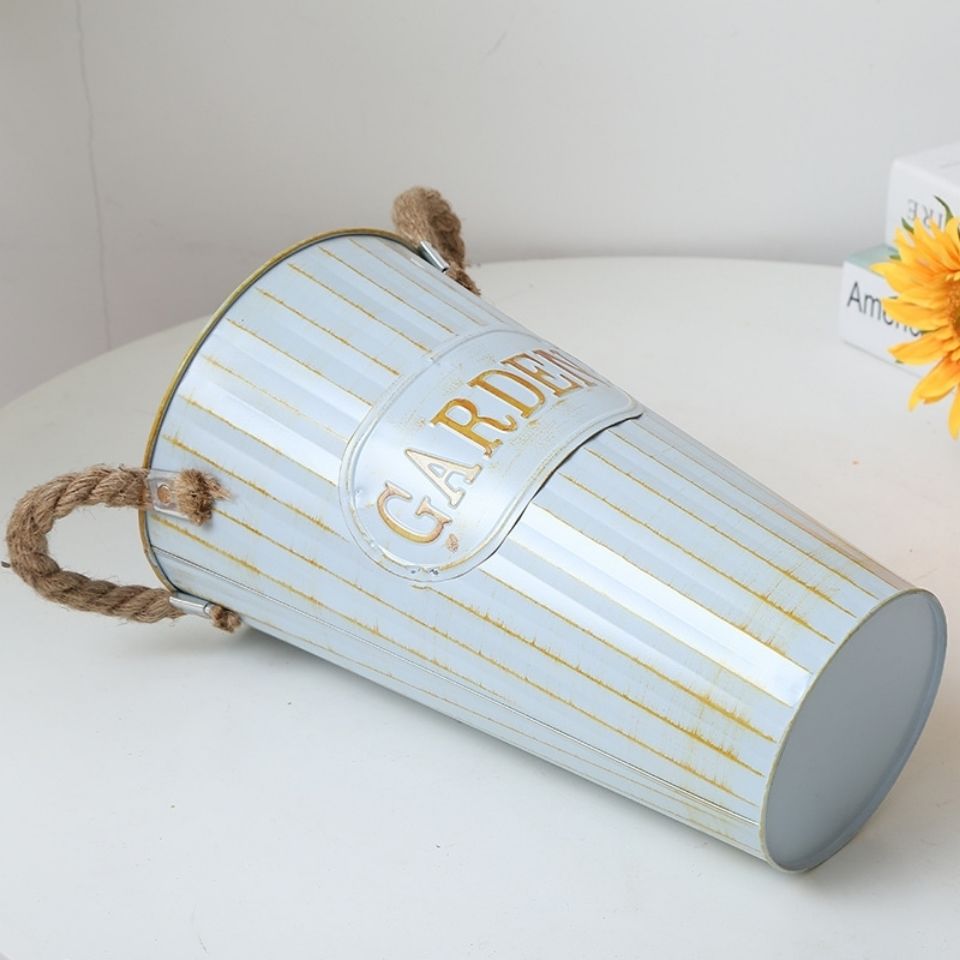 Retro made of old tinned sheet Flower Barrel Flower flower Flower Bucket Flower bucket Hemp Rope Binaural Decoration Awakening bucket American Flower Bucket