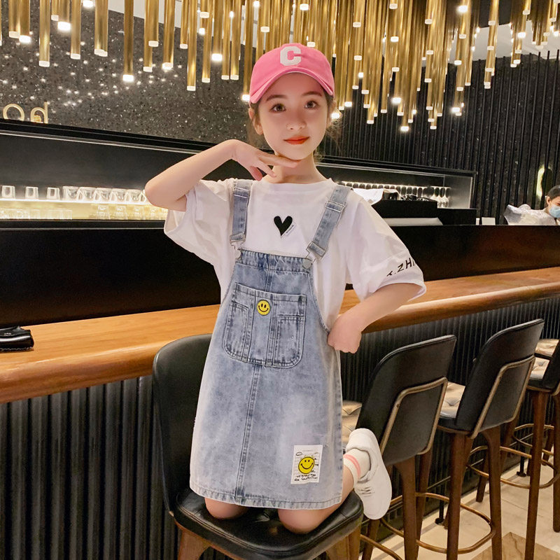 Girl Foreign Dress Denim Cuddling Bag Skirt Summer Dress Suit 2022 New Foreign Pie Korean Version Children's Skirt Summer Daddie