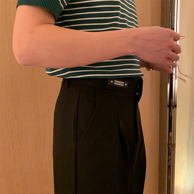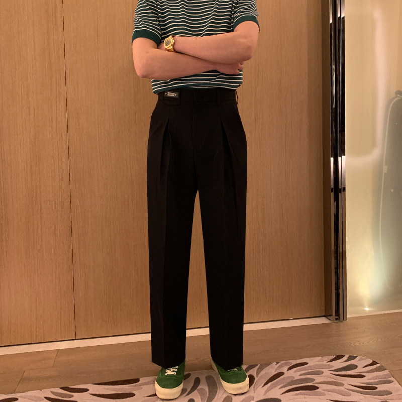 Label decoration casual pants men summer dress 2022 new light cool wind crowd pop loose straight pants pants men