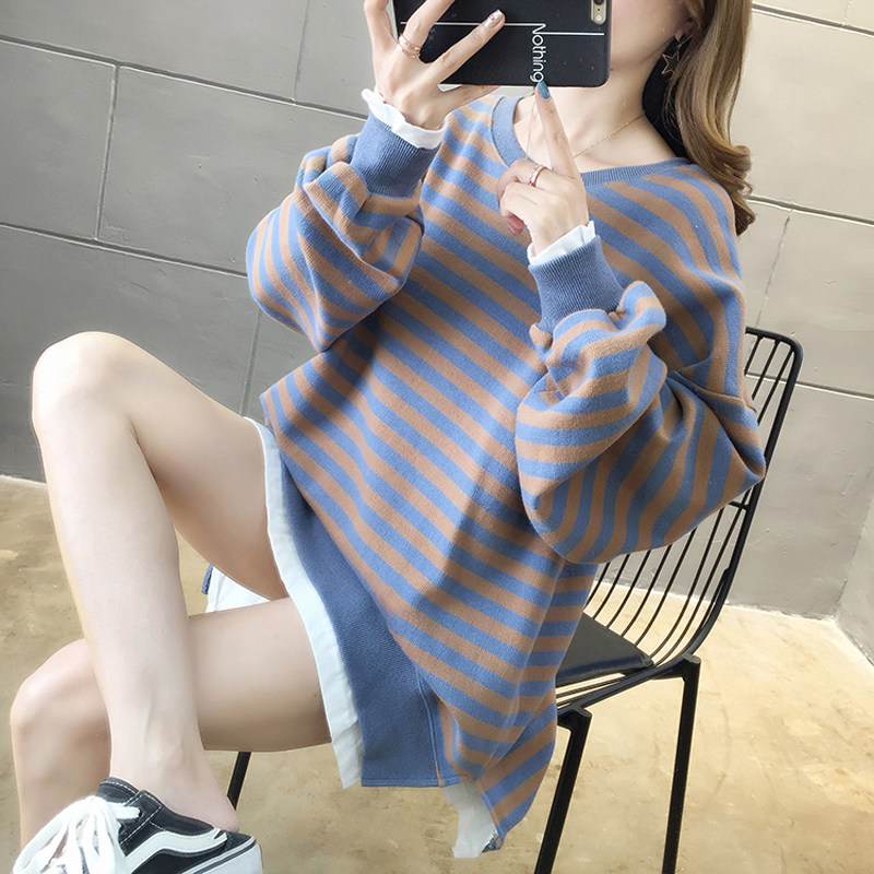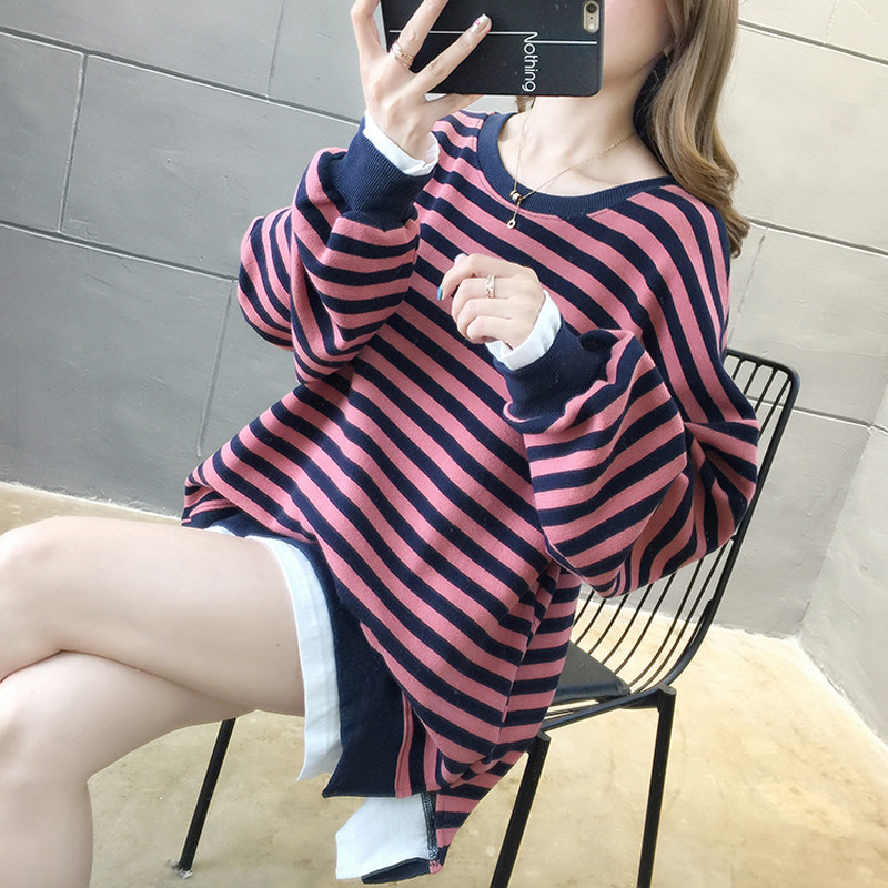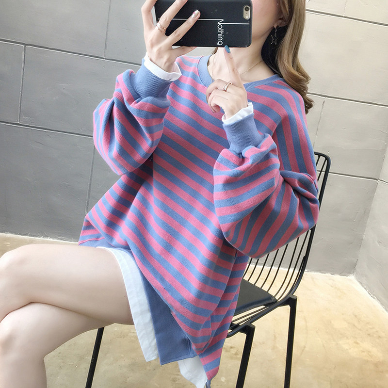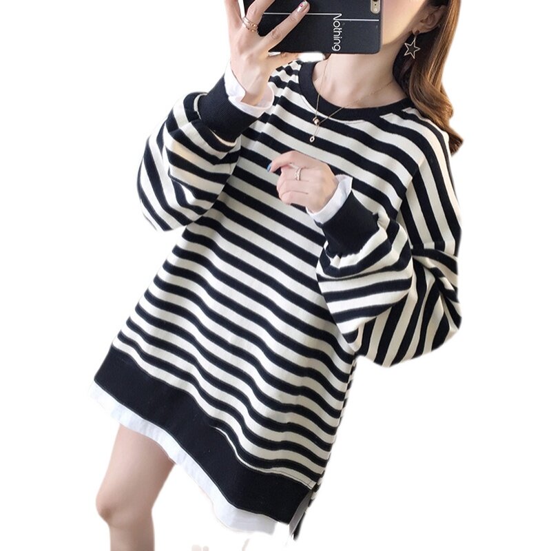Pregnancy Woman Dress Spring New Long Sleeve Stripes Splicing Fake Two-piece Sweatshirt Woman Loose Sleeve Head Minimalist Casual Blouse