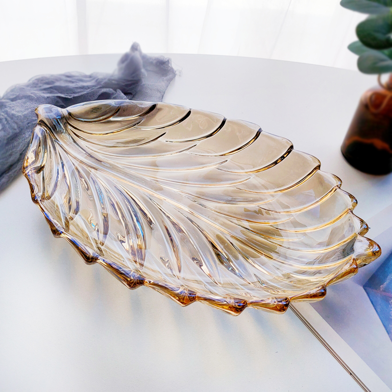 Golden leaf fruit tray (length 30 width 21cm) curry leaf fruit tray (length 30 width 21cm) large number golden feather fruit hopper (length 28 width 20cm)