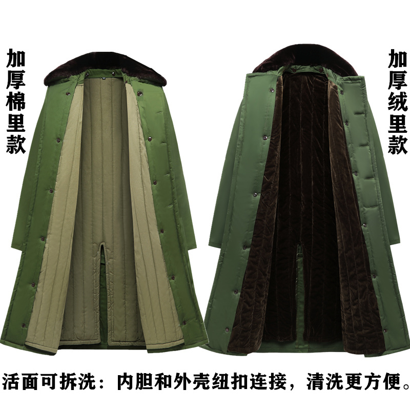 Military cotton green great clothes men and women new winter thickened long style security cold bank anti-cold cotton clothes old northeast cotton padded jacket-Taobao