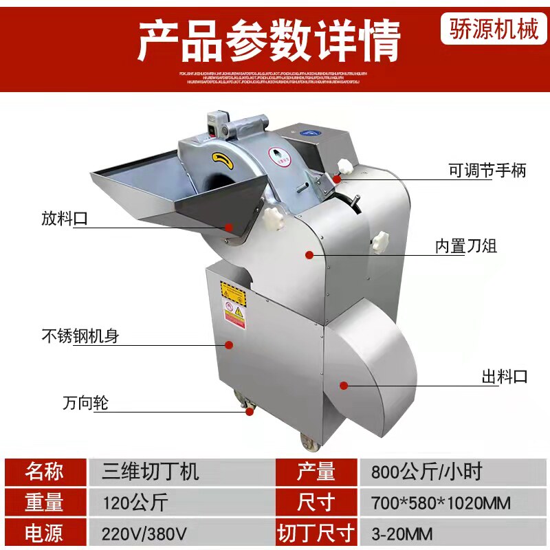 Commercial three-dimensional dicing machine fruit and vegetable meat dicing machine potato radish king oyster mushroom dicing machine micro-frozen meat granulator
