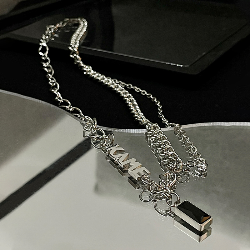 Letter Black Gem Necklace Men's Pure Silver Light Extravagant DOUBLE LOCK BONE CHAIN 2022 NEW TIDE CARDS 520 GIFTS