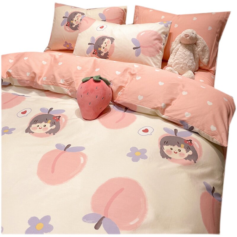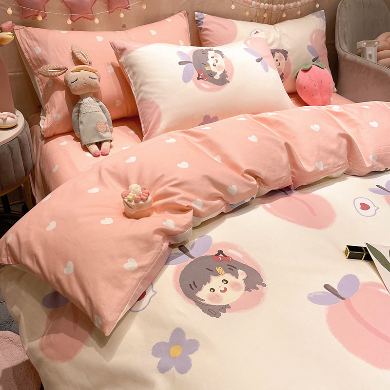 Princess Wind bed Four sets 100 All cotton Dormitory Single Bed Pure Cotton Girl Hearts Pink Three Sets of Hats Quilt Cover
