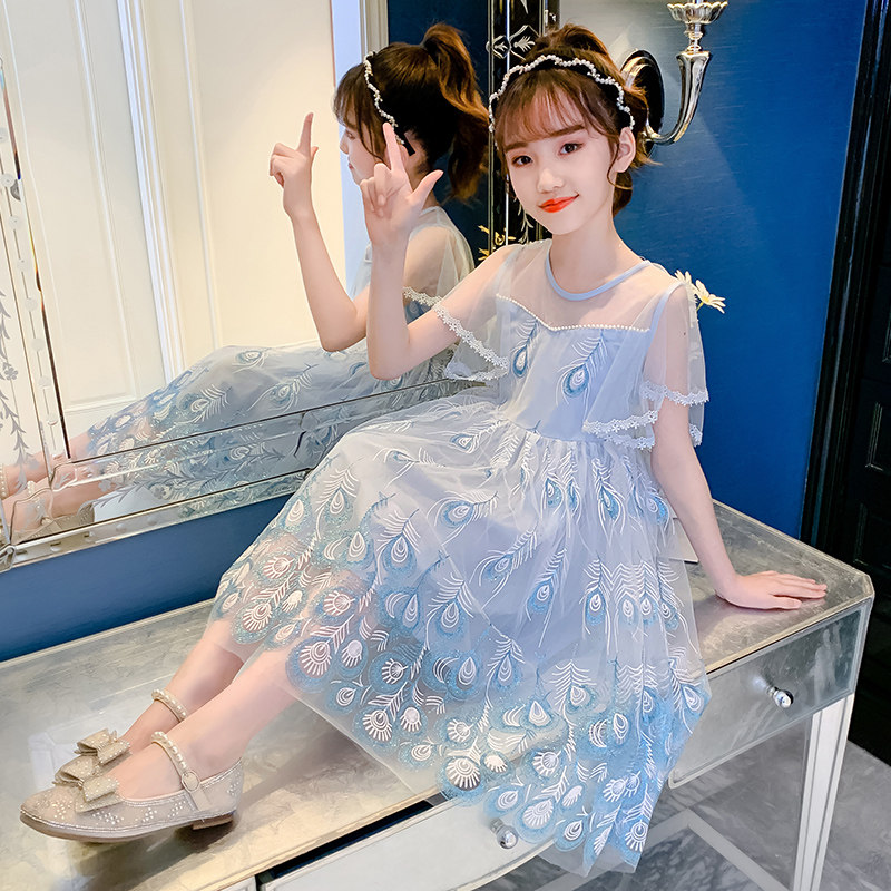 Girl Foreign Dress 2022 New Summer Girl Korean version of the Korean version of the internet yarn CUHK Girl Princess Dresses Dress Damp
