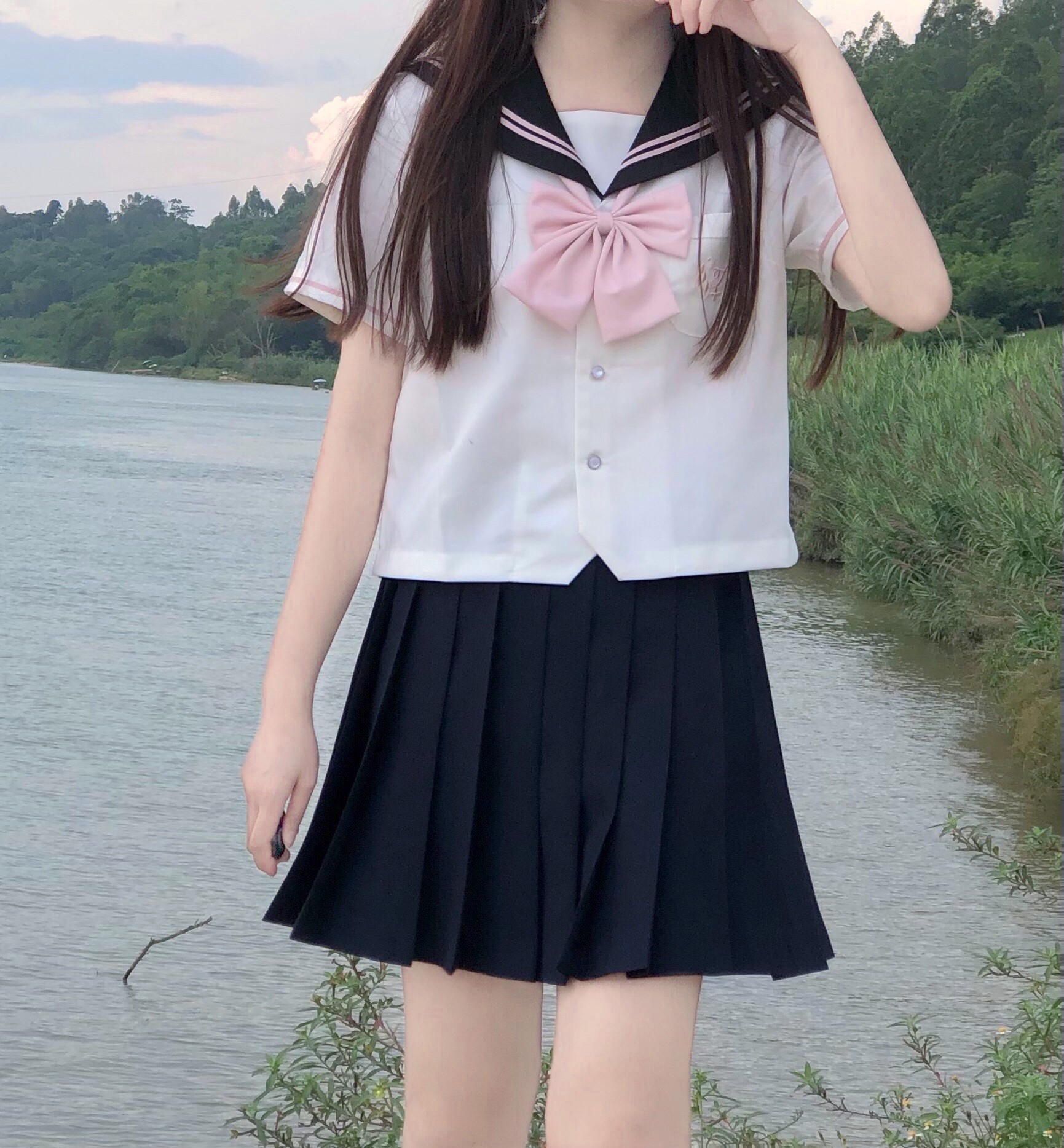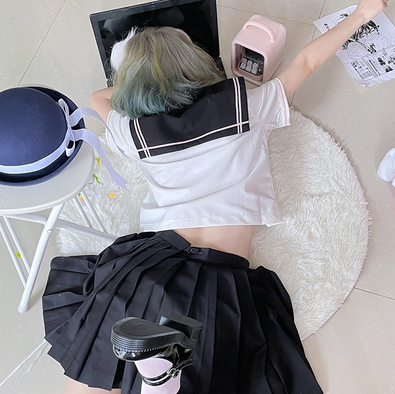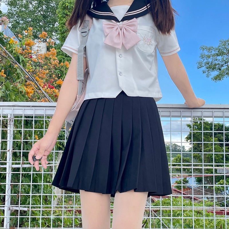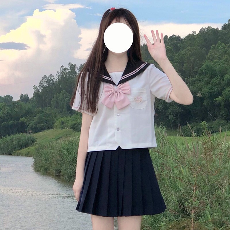 Sailor suit jk uniform suit original short-sleeved summer clothes women's college summer and wind chimes peach leaves Zhongluoligao flat replacement