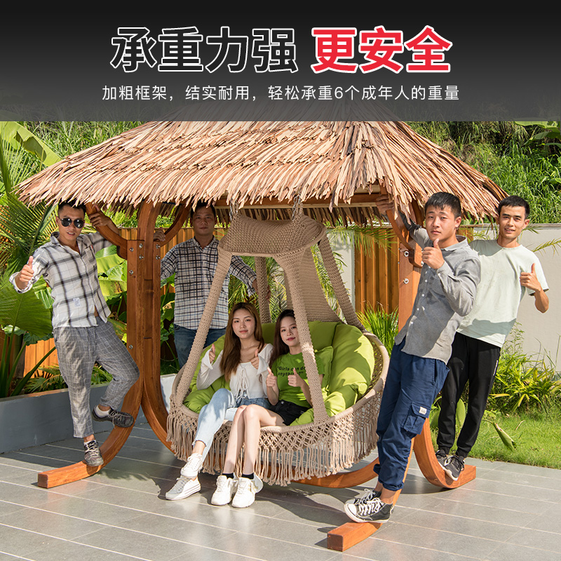 Outdoor Swing with Swing Chair Southeast Asia Rocking Chair Balcony Courtyard Garden Imitation Thatch Grass rope Leisure Swings Hanging Basket