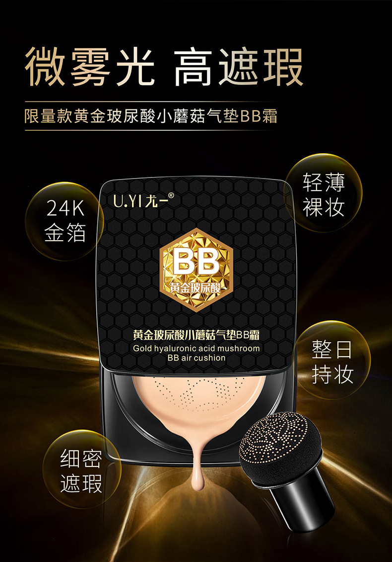 Gold Glassy Uric Acid Small Mushroom Air Cushion BB Cream