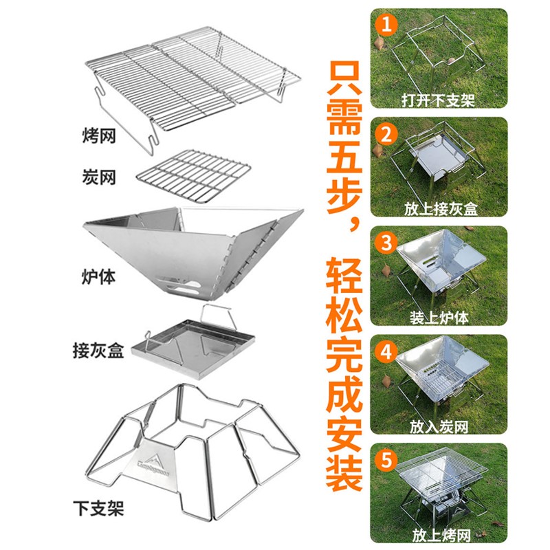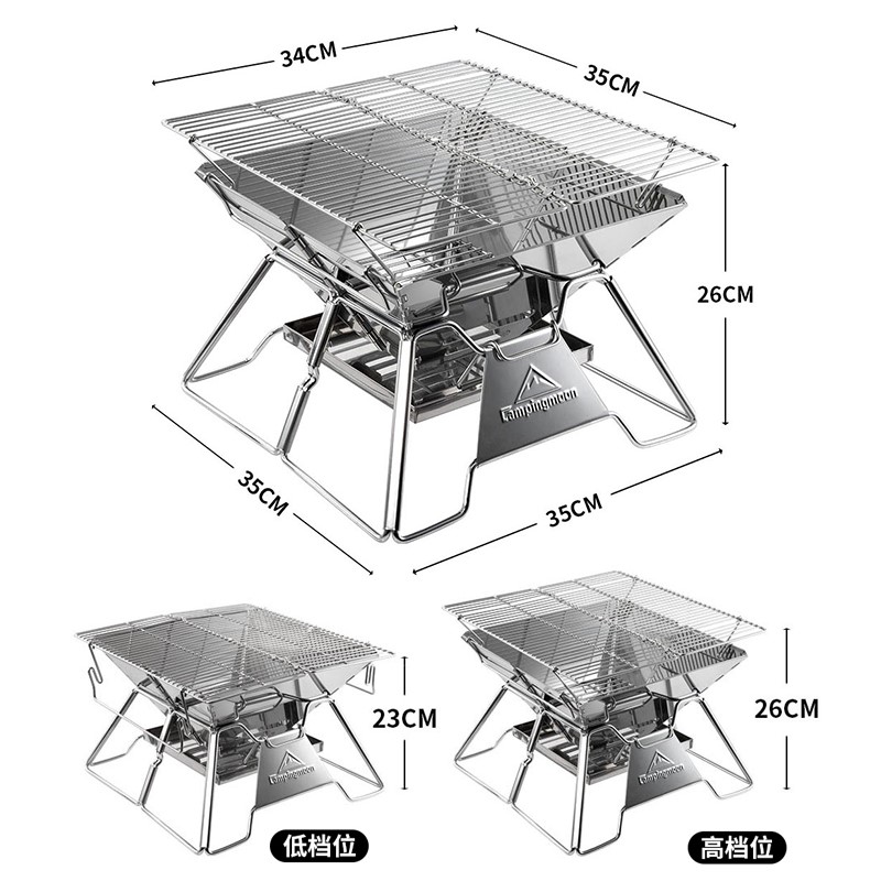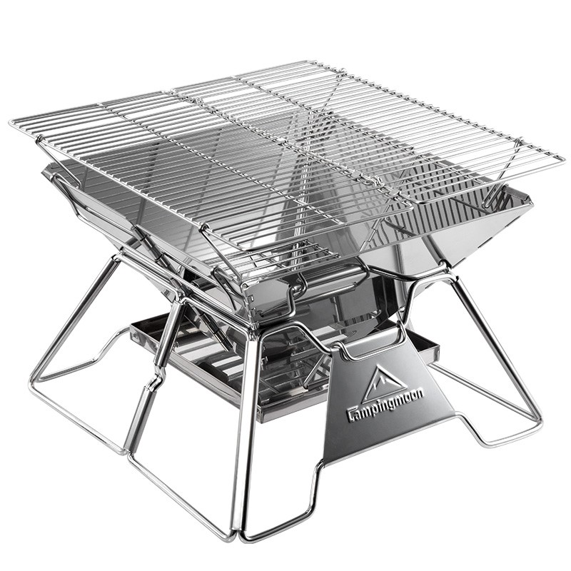 Coman Outdoor BBQ Grill Stainless Steel Folding Grill Net Camping BBQ Portable Grill Charcoal Firewood Stove Fire Table