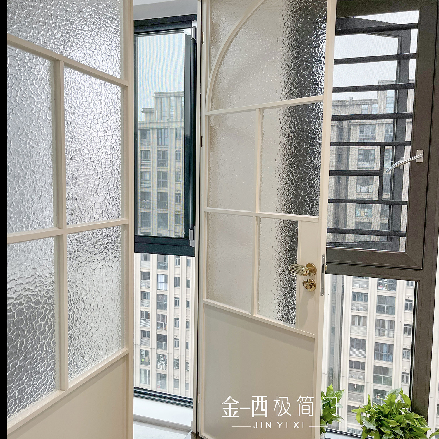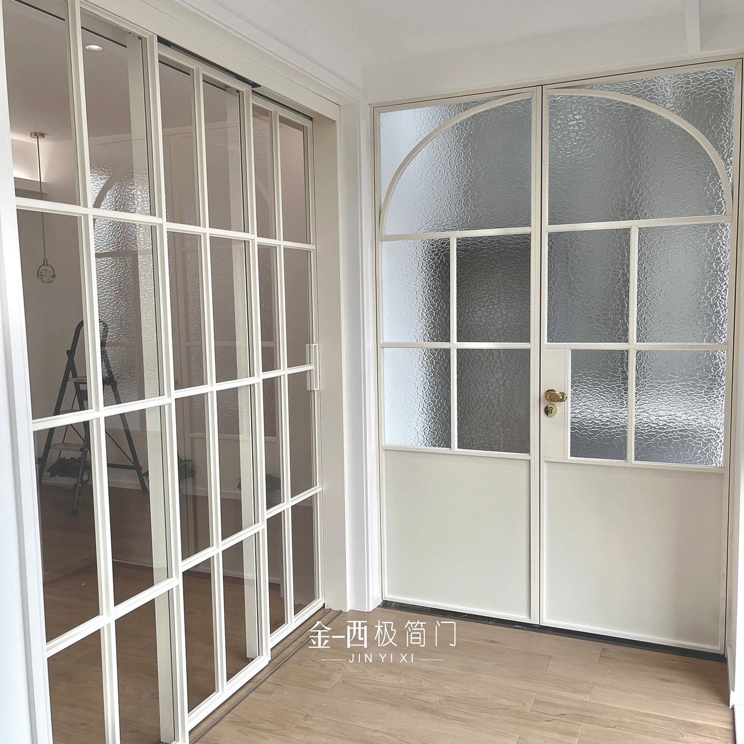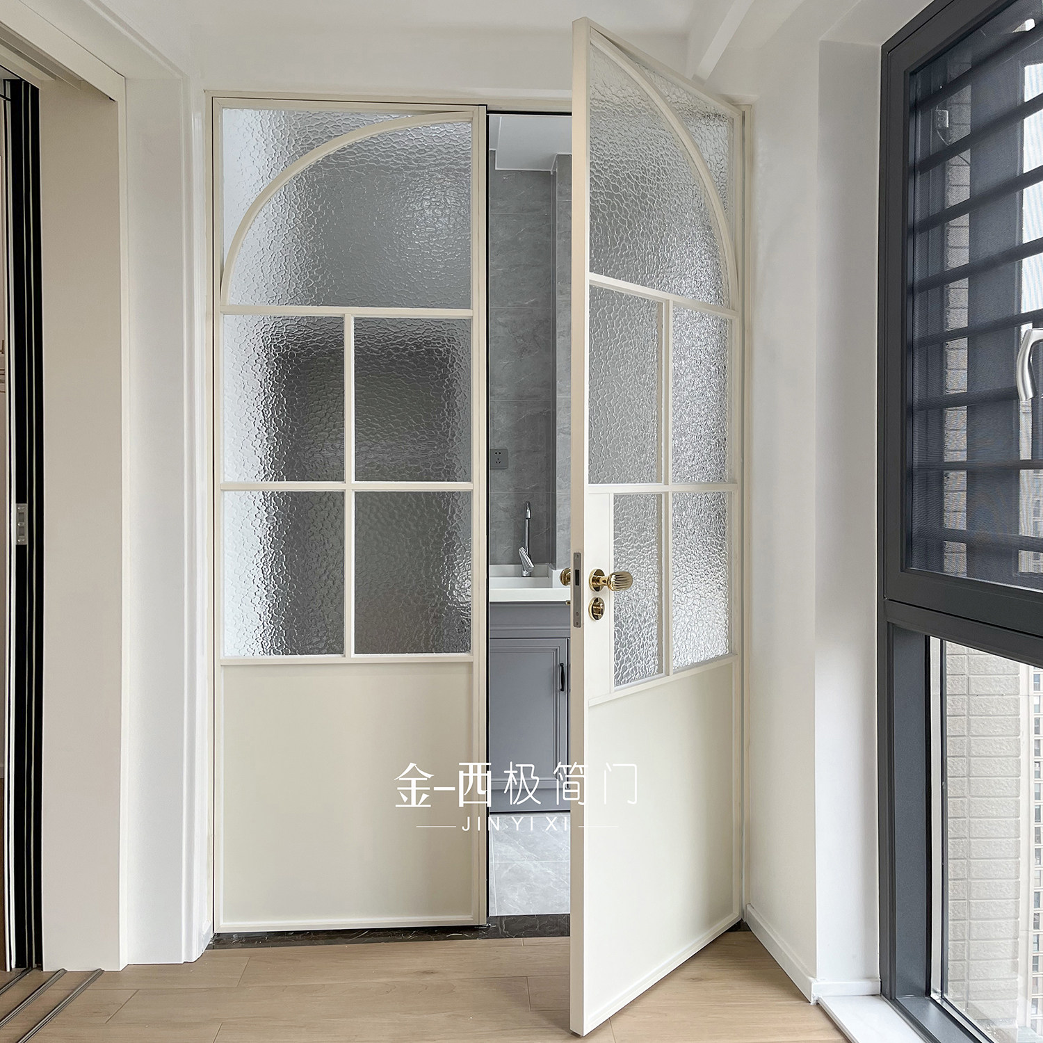 Jinyixi minimalist door retro white living room balcony door double door wrought iron glass door old steel window door customization